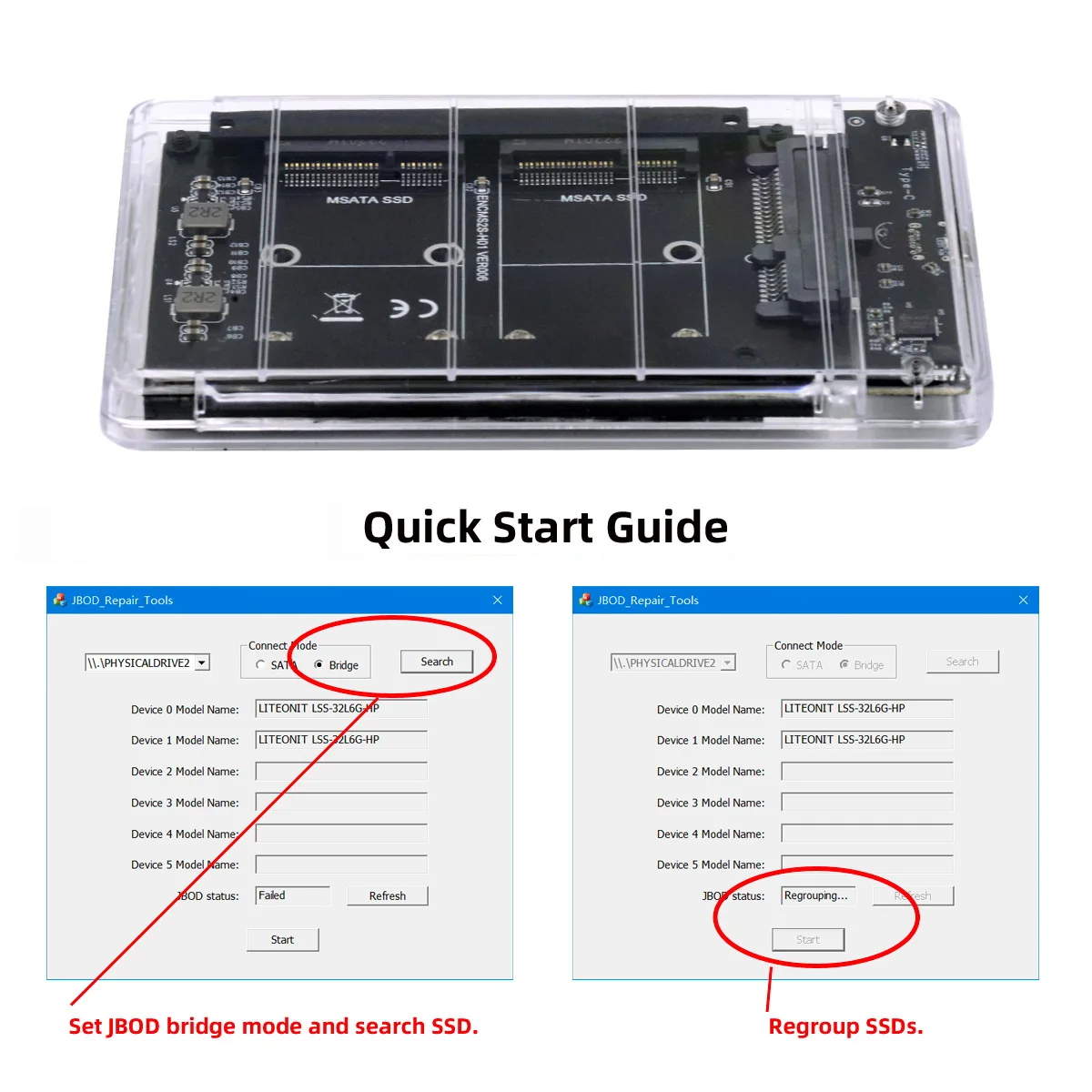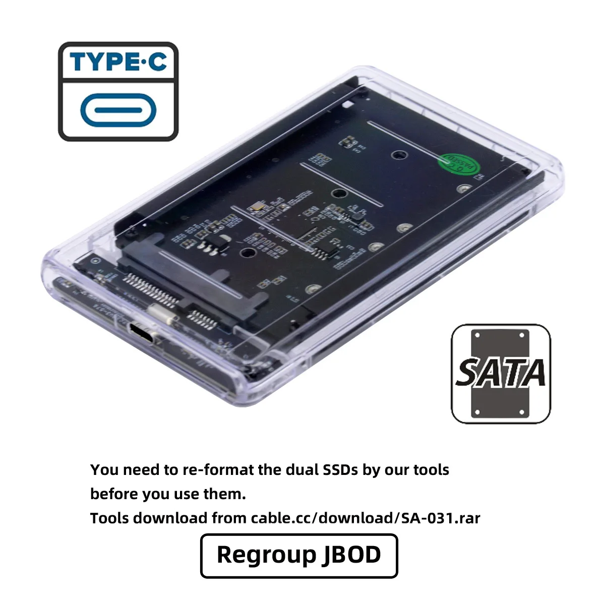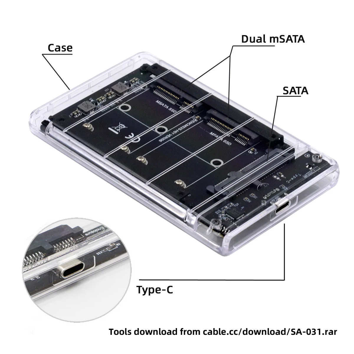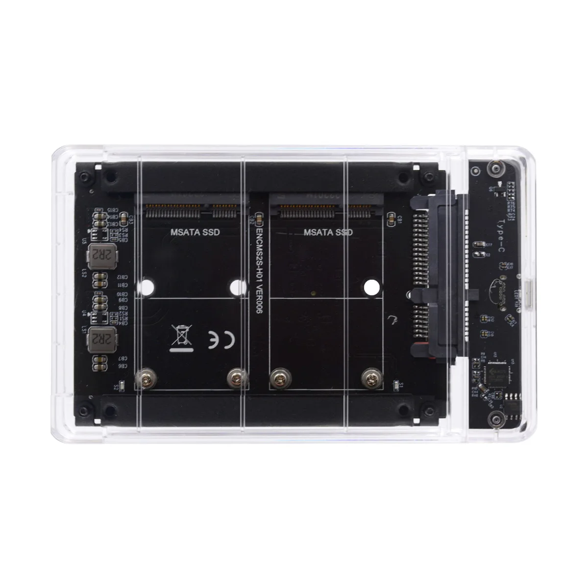Tarjeta Dual MSATA Mini-SATA SSD JOBD Raid0 Span Bridge a USB3.0 Tipo-C 2,5 pulgadas SATA Combo Enclosure