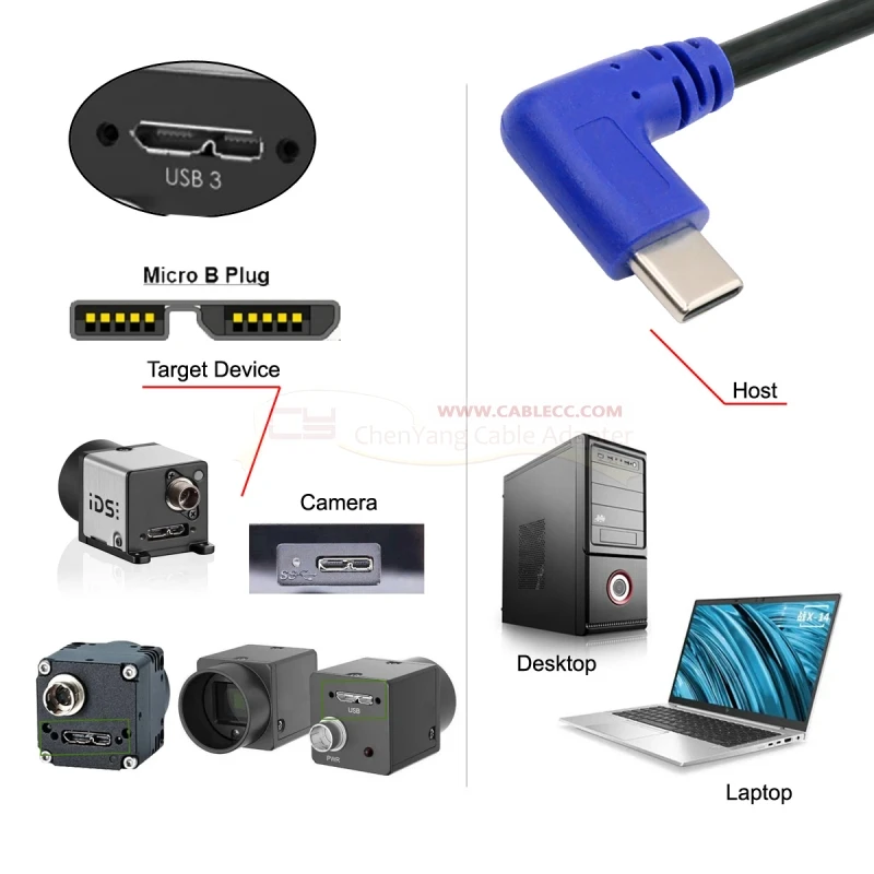 Comprar CableCC-USB-C tipo C a Micro USB3.0 para cámara Industrial, almacenamiento de teléfono en ángulo