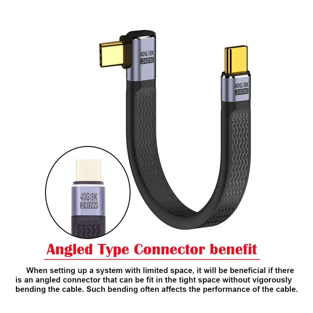 Cablecc Tipo-C USB-C Macho a Macho en Ángulo USB4 100W Soporte 8K 240W 40Gbps Cable de Datos FPC Plano para Teléfono Portátil 13cm