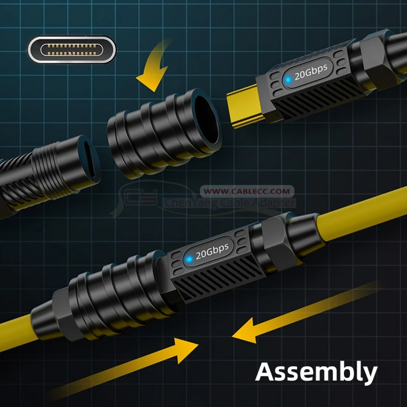 CY Ultra suave de alta flexión 140 USB4 estiramiento en espiral macho a macho Cable de alimentación y datos 20Gbps W 8K para ratón de teclado de juegos