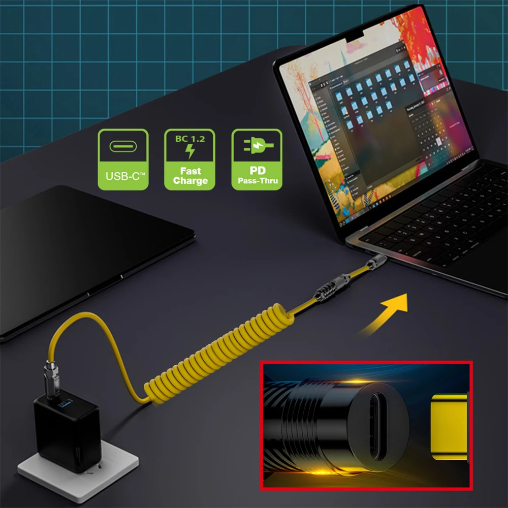 3-Stretch Coiled 2 USB4 Cable 20Gbps 140W 8K para Gaming Keyboard Mouse Type-C Cable macho a macho