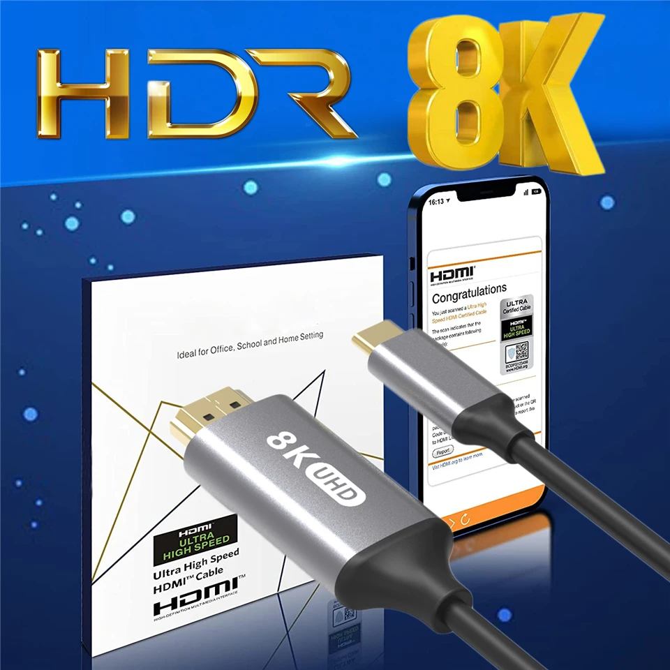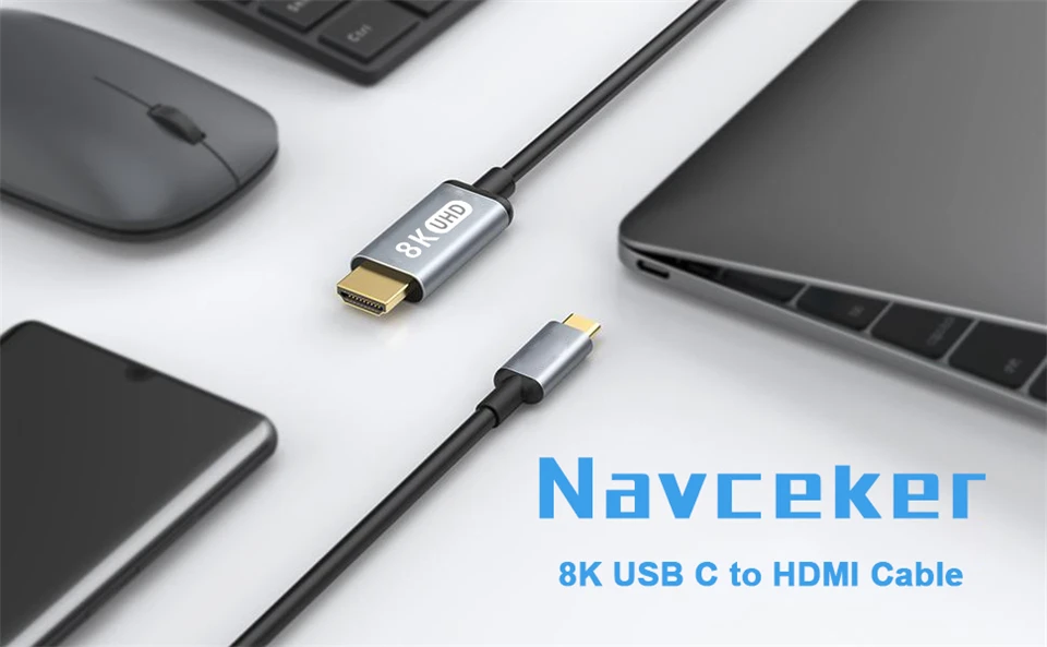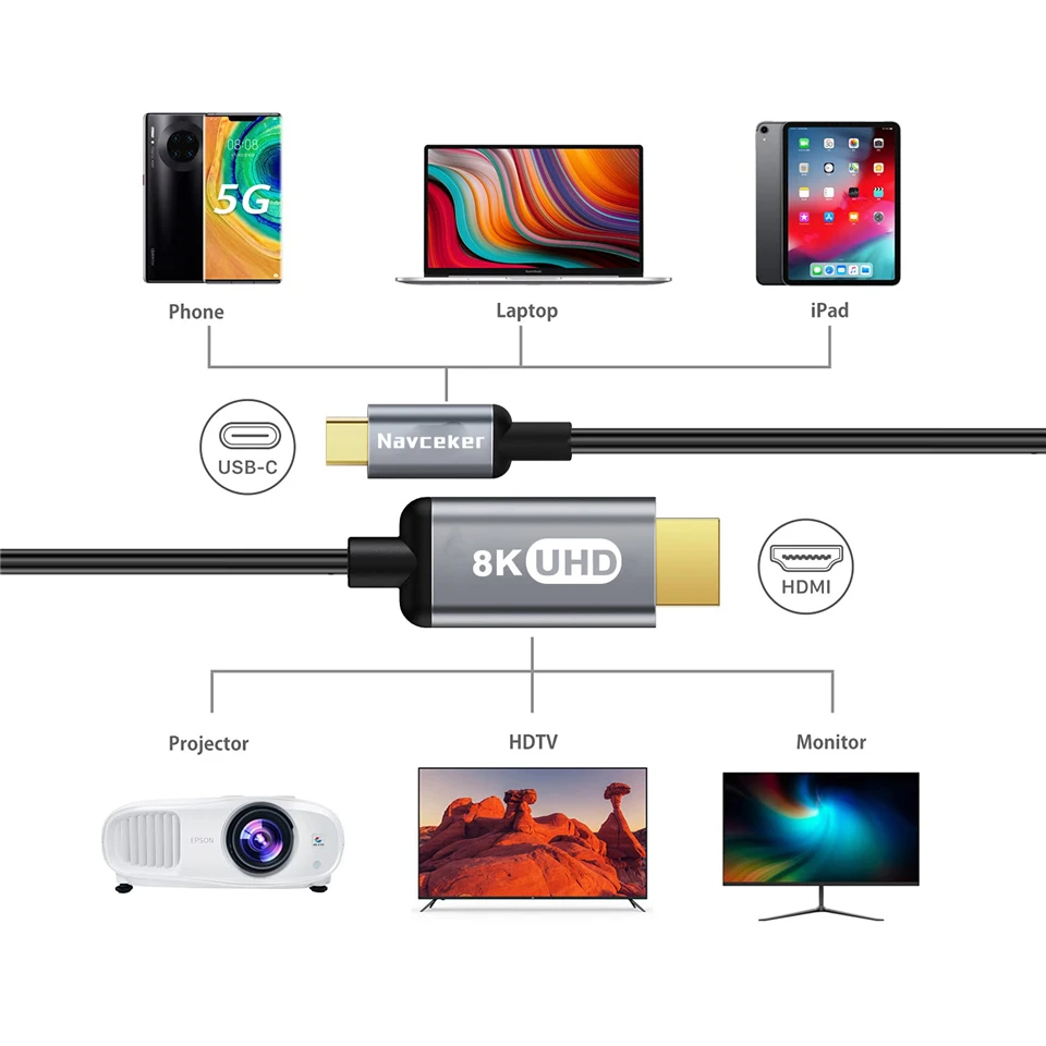 Cable Navceker de 1 a HDMI de 8K a 30Hz,El cable tipo C a HDMI admite una resolución de hasta 8K a 30Hz,4K a 120Hz y 4K a 60Hz, no se preocupe por el azul, la distorsión y el retraso.