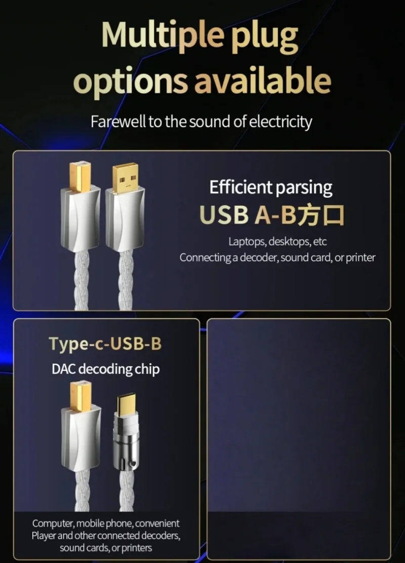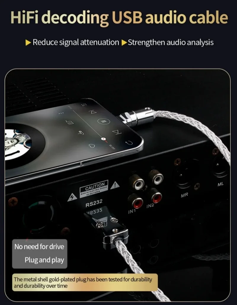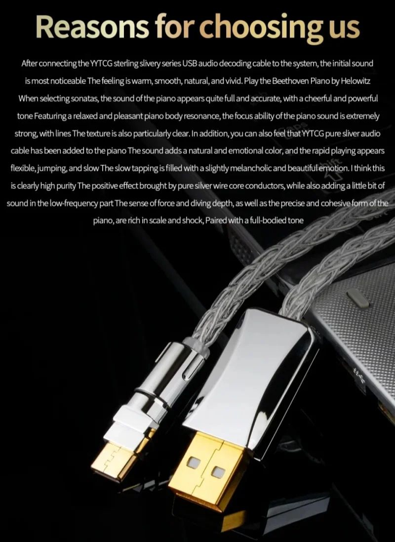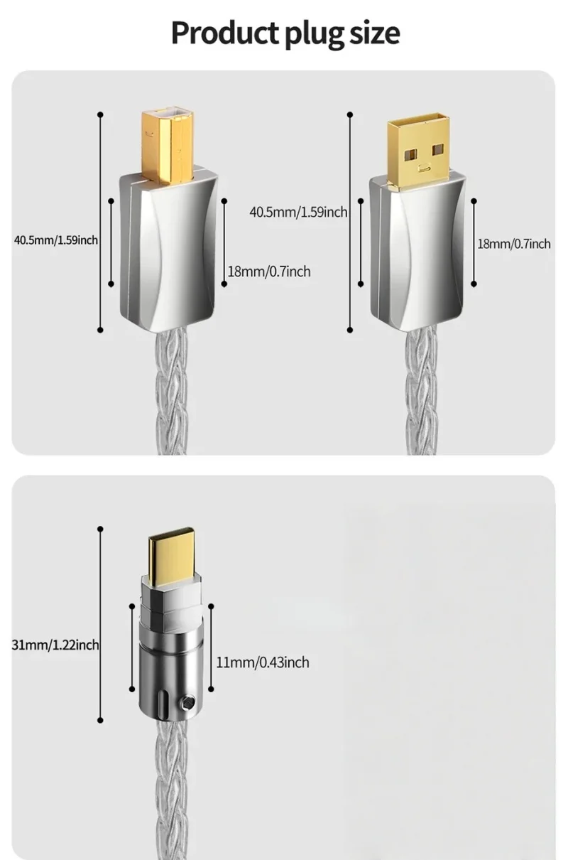 Cable decodificador de audio USB de plata esterlina Cable de datos DAC YS-2882.Color: Plata3.Longitud: 0,5 m, 1 m, 1,5 m, 2 m, 3 m4.OD: 4,5 mm/0,17 pulgadas5.Tipo: (a-b / a-c / c-b / c-c )6.Características: tejido trenzado de 8 hilos.7.Factores externos: PVC8.Material: núcleo de alambre de plata de ley9.Aplicable: teléfonos móviles, ordenadores, reproductores decodificadores de audio, impresoras, etc.