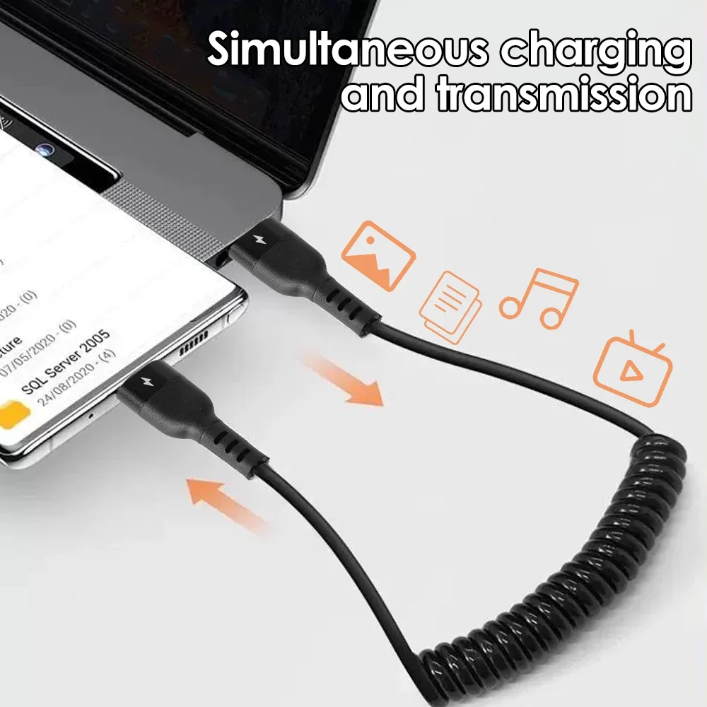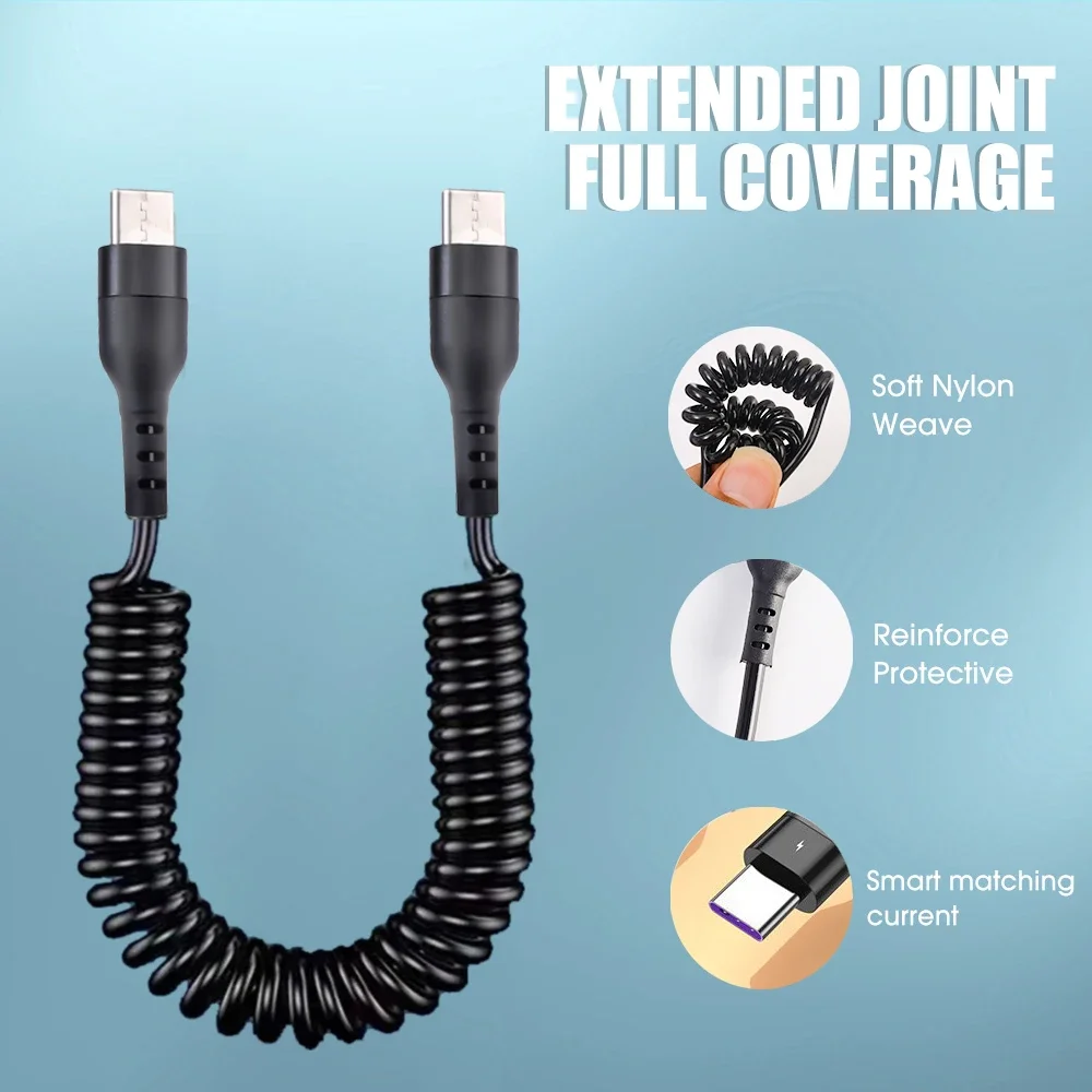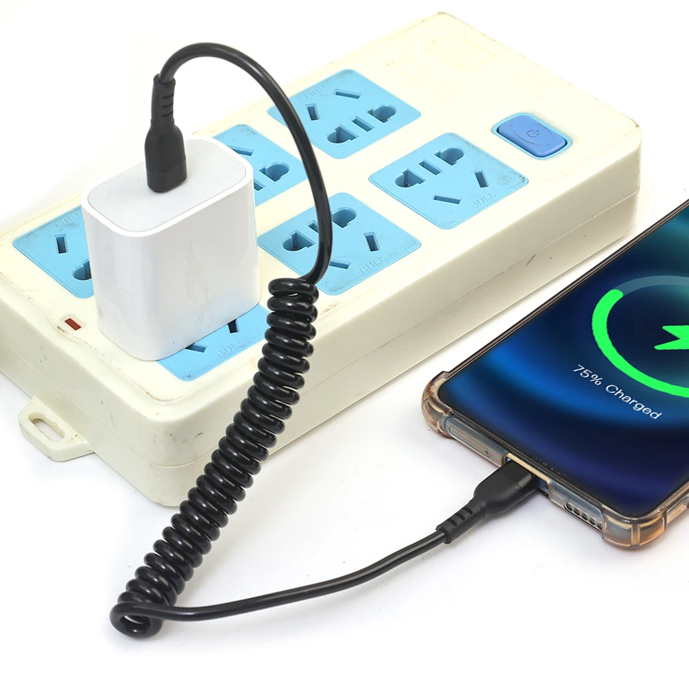 【Diseño de resorte estirable】: el diseño con resorte permite que el cable se estire y retraiga, proporcionando un almacenamiento conveniente y evitando enredos cuando no está en uso.