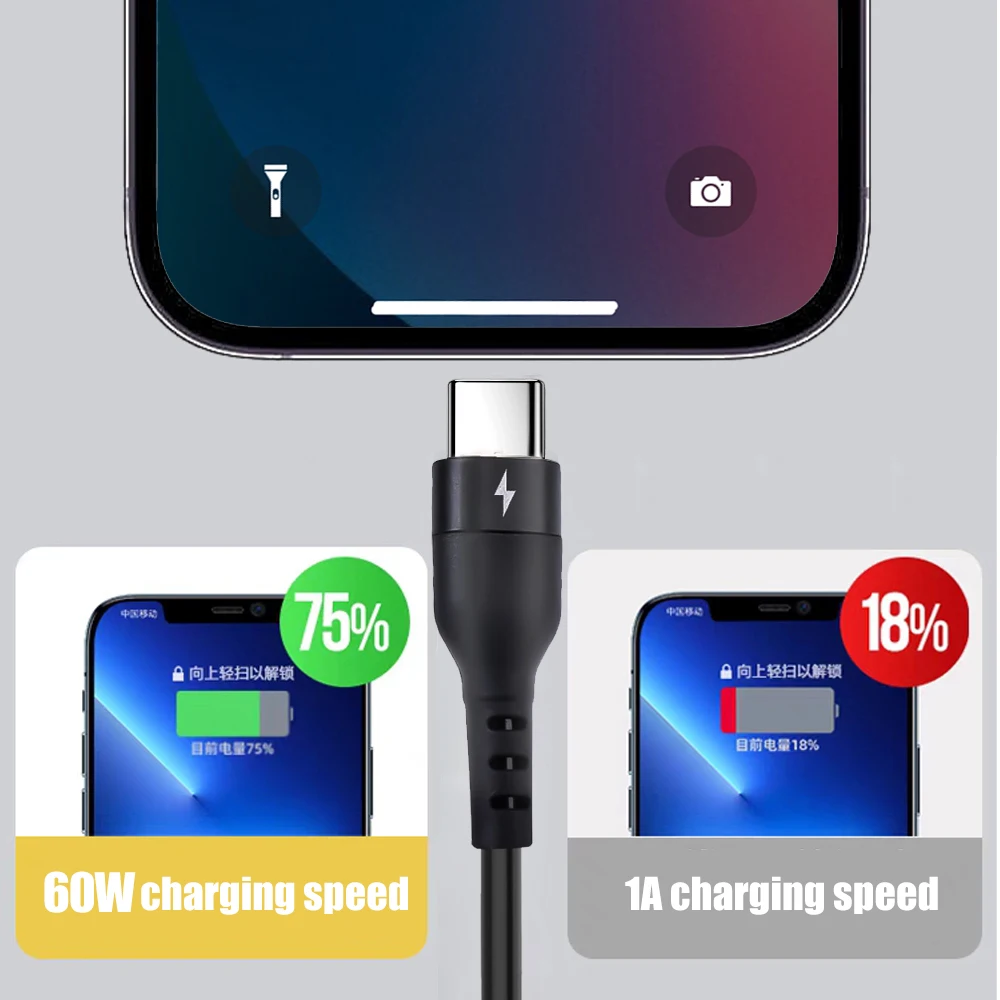 【Carga rápida】: Con la tecnología de carga rápida PD60W, este cable ofrece velocidades de carga ultrarrápidas para sus dispositivos, lo que garantiza que siempre esté encendido y listo para funcionar.