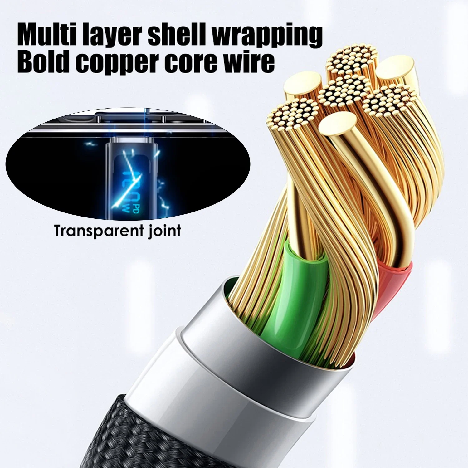 Tejido de alta densidad: hecho de tela tejida de alta densidad, este cable puede soportar un uso de alta resistencia.La apariencia tejida proporciona protección adicional contra el desgaste, asegurando una vida útil más larga.