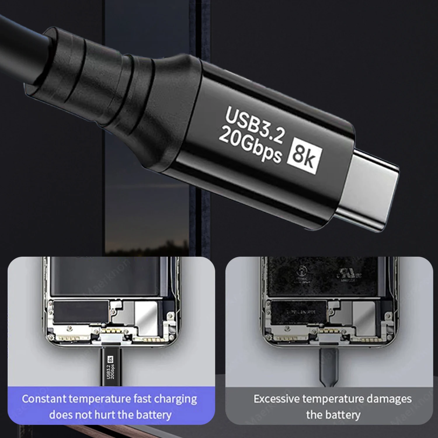 【Carga rápida y transmisión de datos】: este cable de datos tiene una capacidad de carga de 100 W, que puede cargarse de manera rápida y eficiente.Además, también admite transmisión de datos de vídeo 8K, lo cual es muy adecuado para medios de alta resolución y transferencia de archivos grandes.