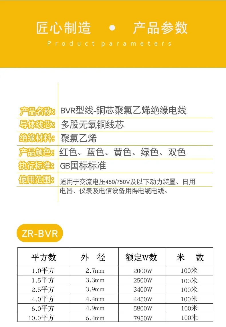 Cables digitales BVR 10 Cable cuadrado para mejoras en el hogar Cable flexible multihebra de un solo núcleo
