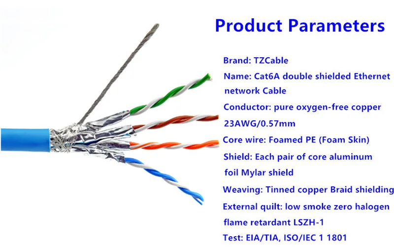 Nombre del producto:Cable Ethernet RJ45 CAT6A 10G SFTP Cable de instalación de doble blindaje 23AWG YS-279