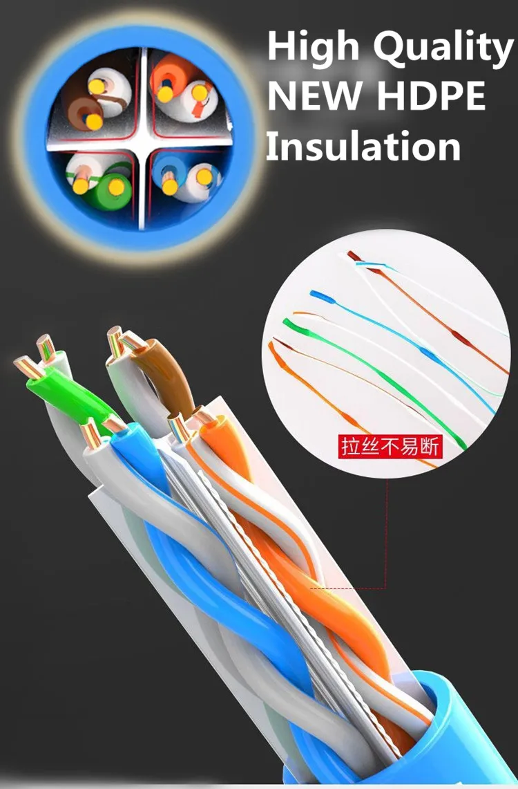 El cable de conexión Ethernet Cat6 proporciona conectividad universal para todo, desde computadoras, impresoras, servidores, enrutadores y cajas de conmutación hasta reproductores multimedia de red, dispositivos de almacenamiento conectados a red, teléfonos VoIP y otros equipos de oficina estándar.Especialmente, puede admitir perfectamente la cámara POE.