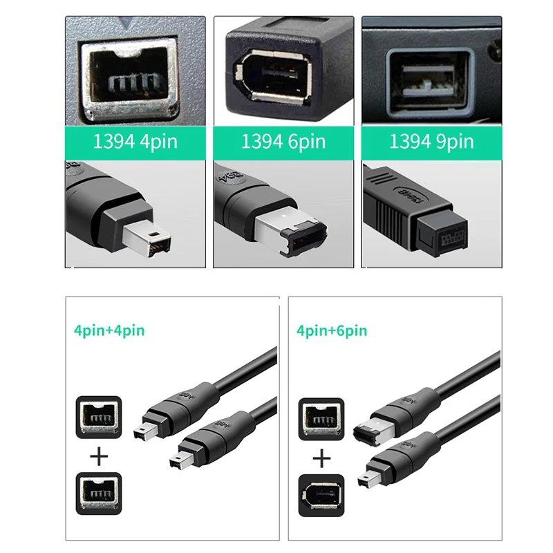 Cables Firewire Premium IEEE 1394 de 9 pines a 9 pines, 9 pines a 4 pines, línea macho a macho de 6 pines a 6 pines para PC, DV, iLink, tarjeta de captura de vídeo