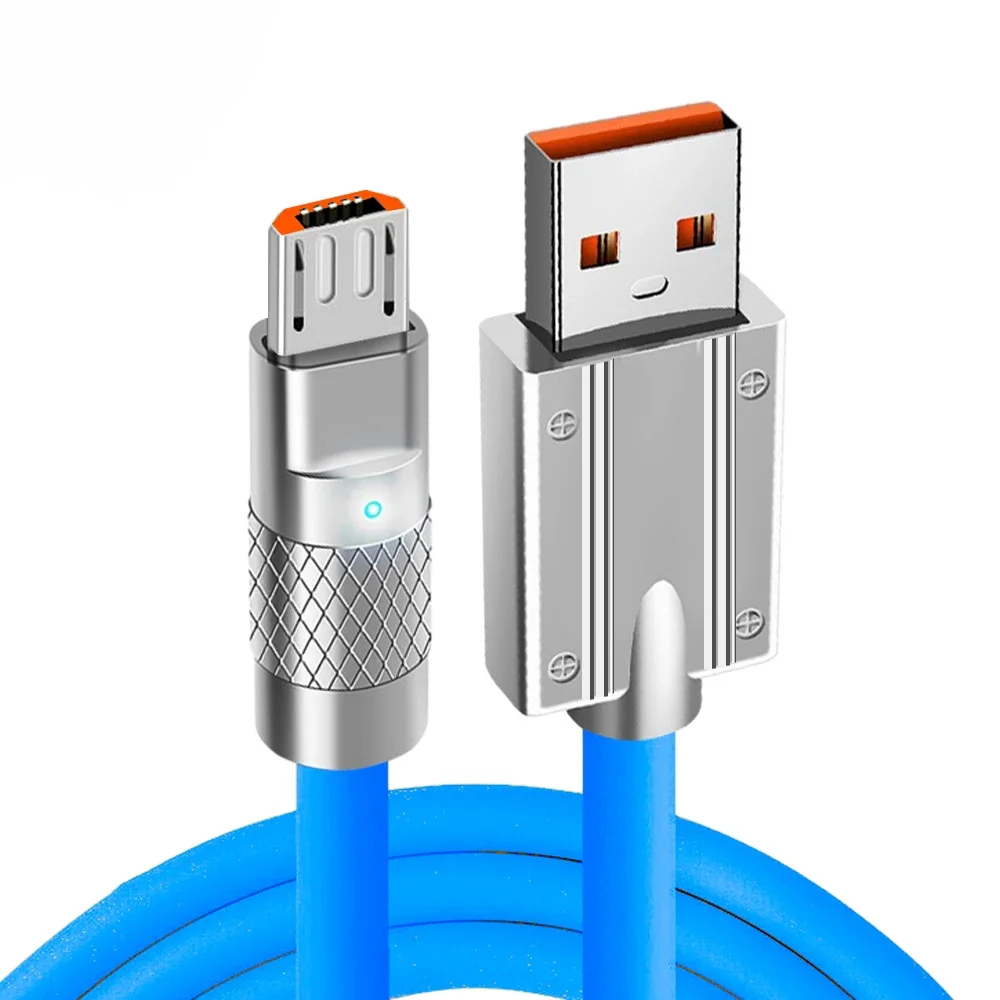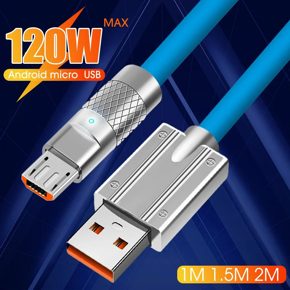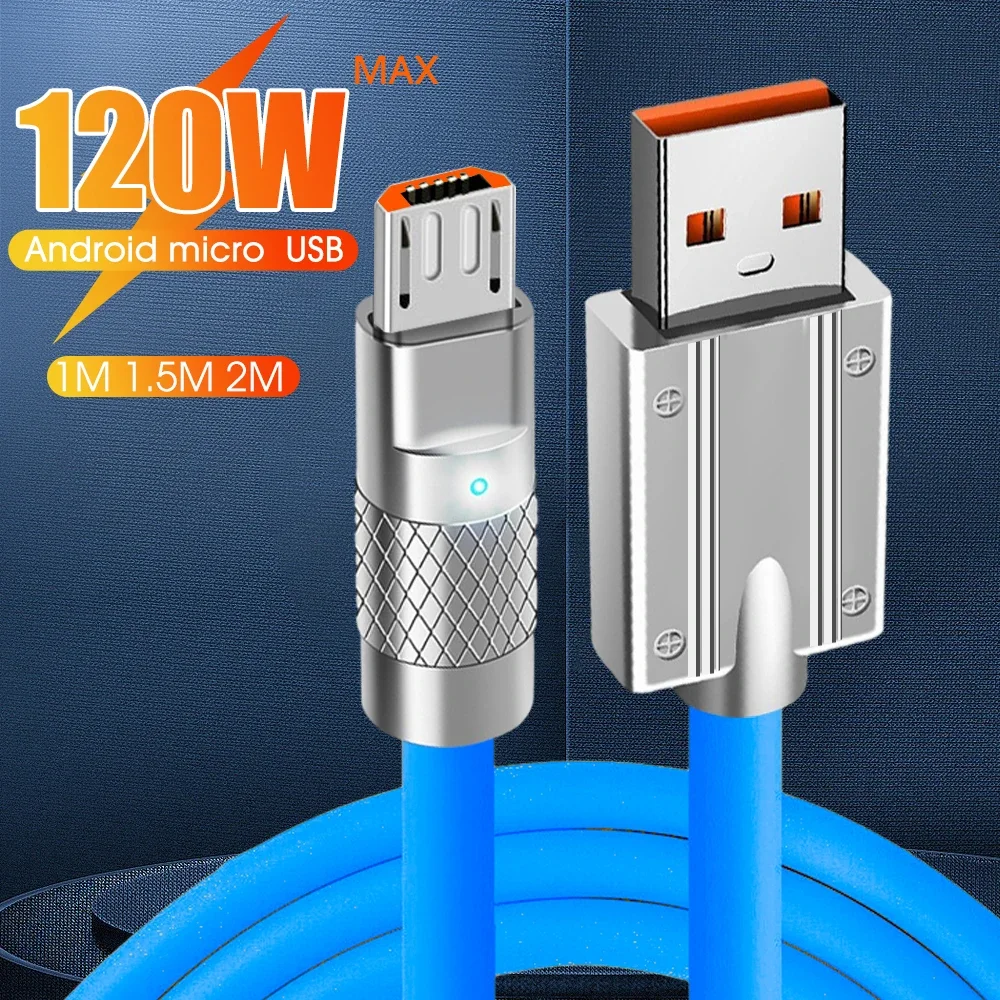 Comprar Cables Micro USB para cargador de teléfono, cable de datos de carga rápida de alta velocidad, aleación de aluminio, irrompible, con luz, 120W, 6A