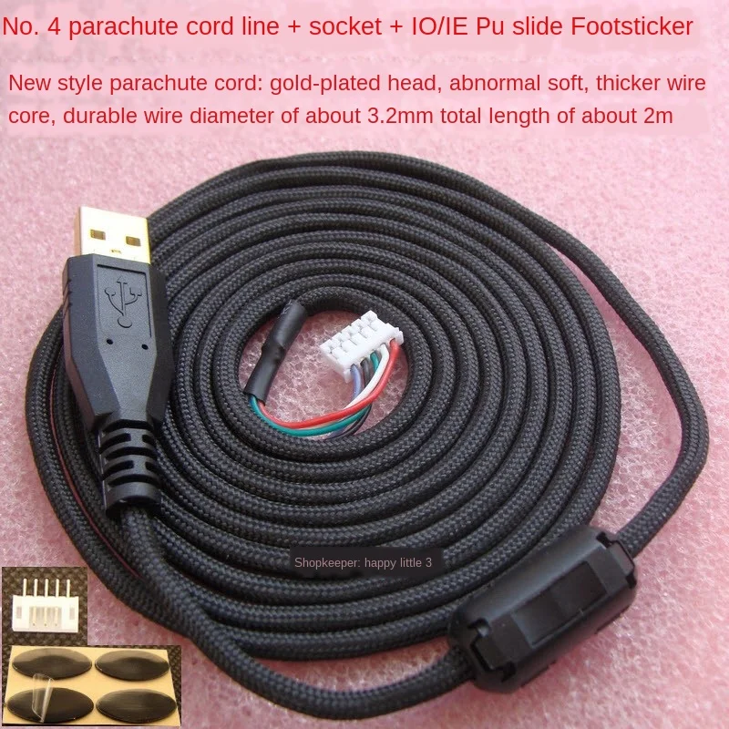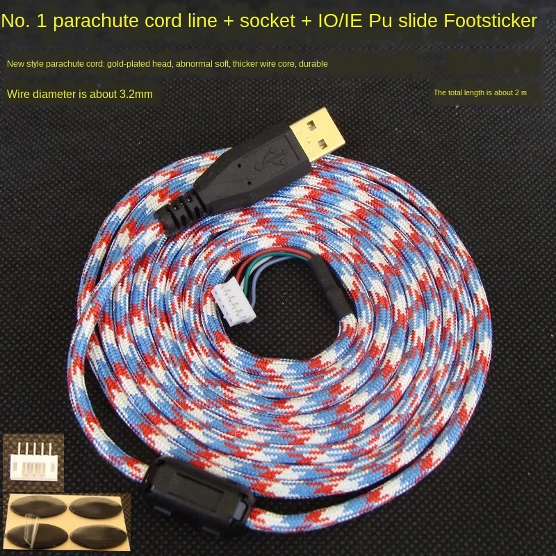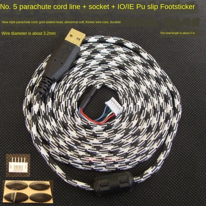 Comprar Cables de ratón Paracord personalizados, escudo magnético suave para Microsoft IO1.1, Shark IE3.0, Conector de ordenador, pies libres, 1200dpi, 2m
