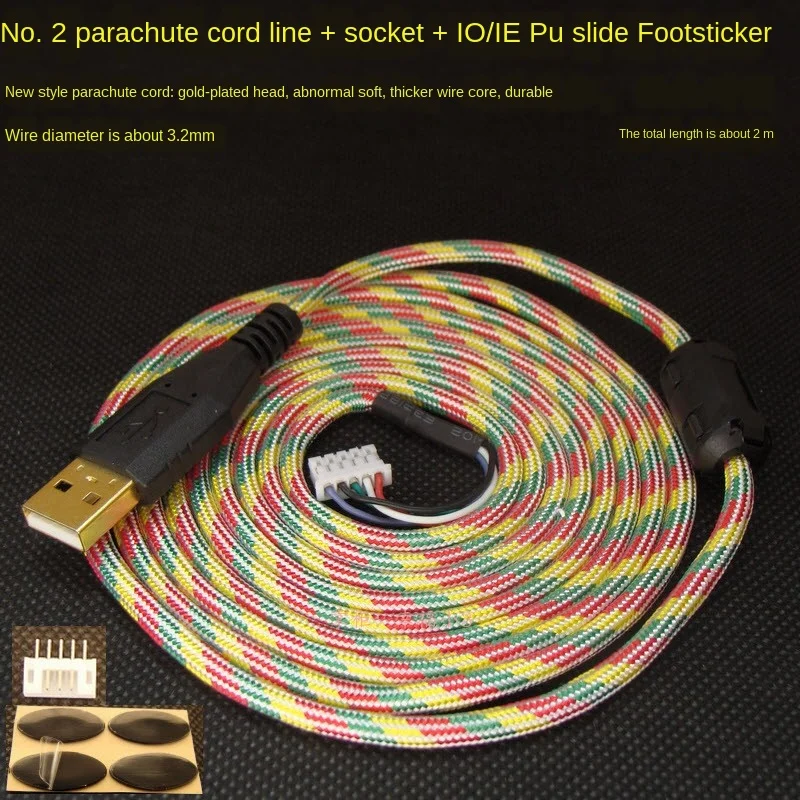 Comprar Cables de ratón Paracord personalizados, escudo magnético suave para Microsoft IO1.1, Shark IE3.0, Conector de ordenador, pies libres, 1200dpi, 2m