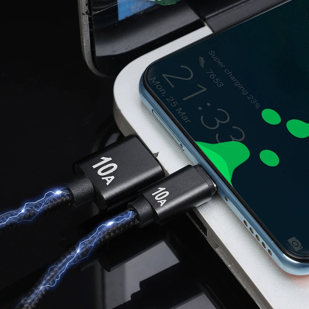 Carga ultrarrápida: este cable está diseñado con tecnología avanzada, que proporciona una velocidad de carga ultrarrápida de hasta 10A, lo que garantiza que su dispositivo se inicie inmediatamente.