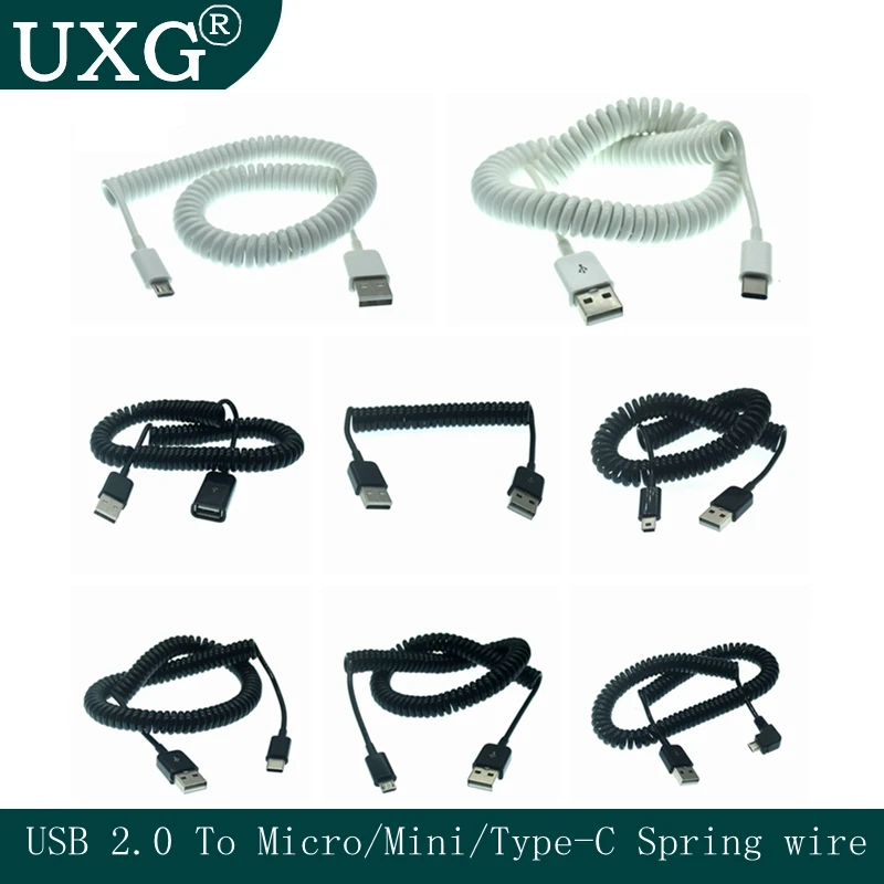 Comprar Cables USB 2,0 a Mini USB, Cable adaptador de carga de datos, Micro USB tipo c, espiral