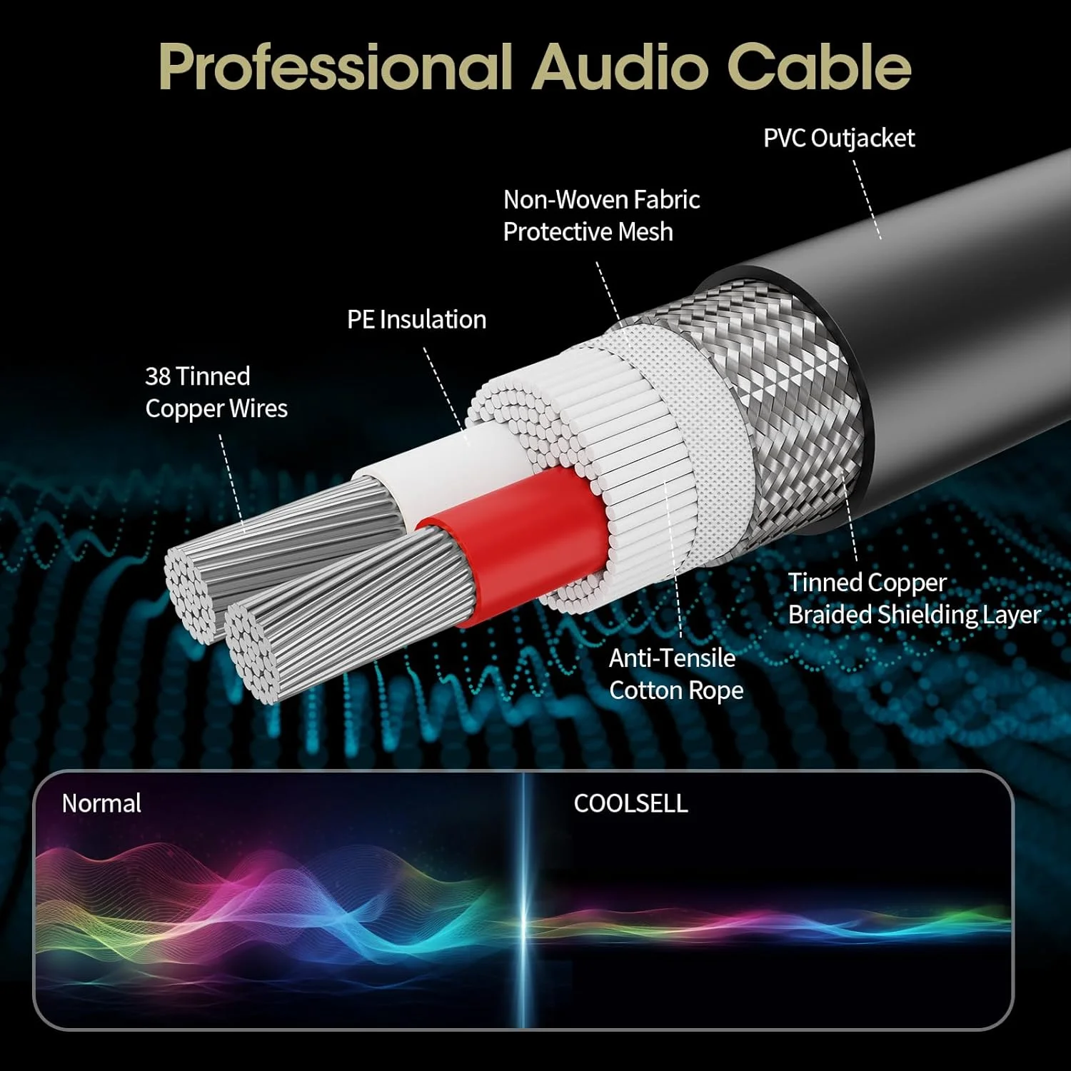 🎤【Doble blindaje para evitar interferencias】: Cable de micrófono con capa de blindaje de cobre estañado trenzado y material de aislamiento de PVC, reduce las interferencias electromagnéticas externas, sin ruido, sin zumbido, sin silbido, presente efecto de música Hi-Fi.