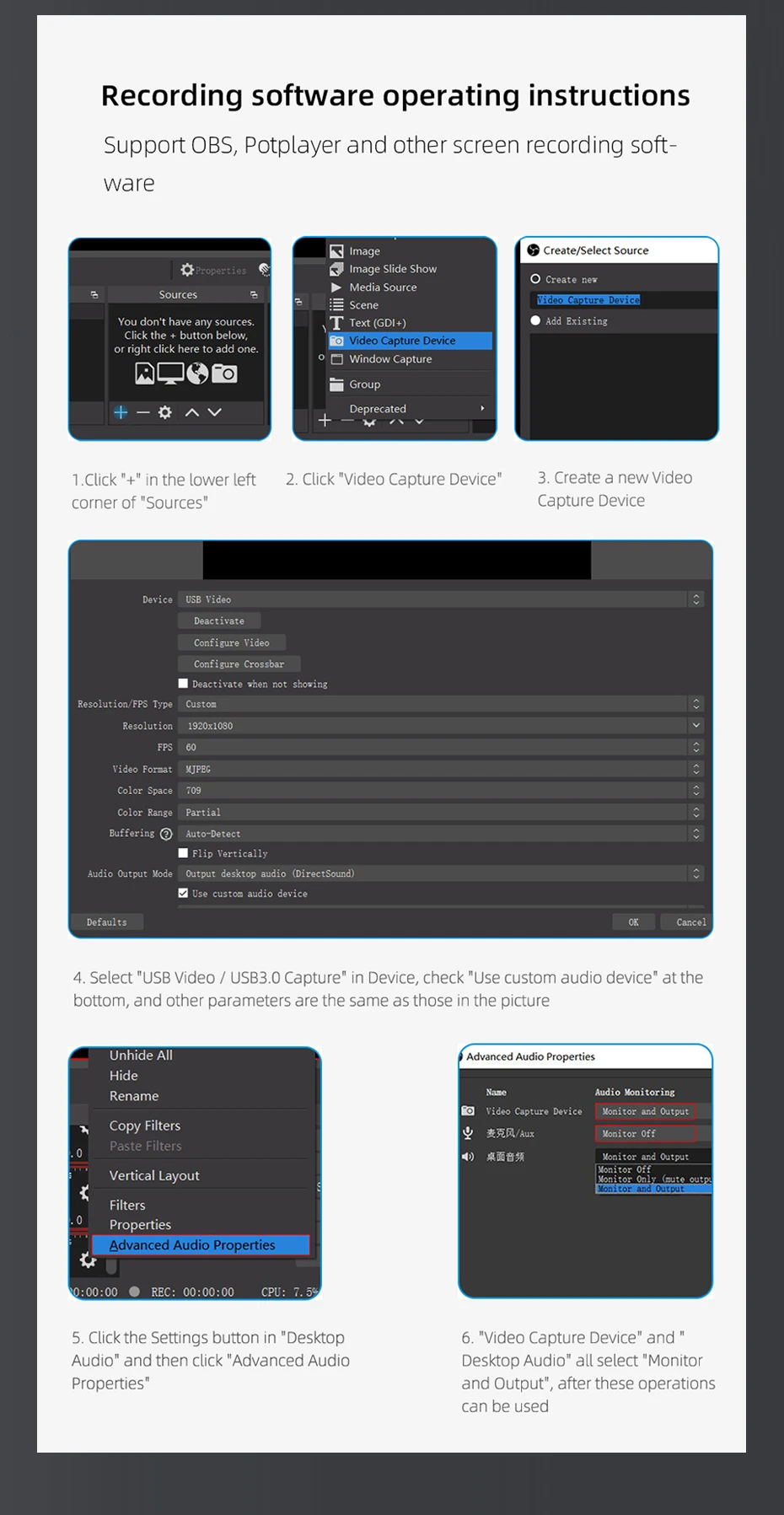 Las tarjetas de captura de vídeo CABLETIME tienen una entrada de alta definición de hasta 4K a 60 Hz y una resolución máxima de salida de 1920 × 1080 a 30 Hz.Ofrezca grabación de alta calidad 1080P 30 fps y vaporización en vivo. La tarjeta de captura de audio y vídeo es muy adecuada para juegos en vivo, grabación, edición y transferencia de juegos en alta resolución de 1080p a 30 fps en OBS, AMCap, Xsplit, VCL y más.