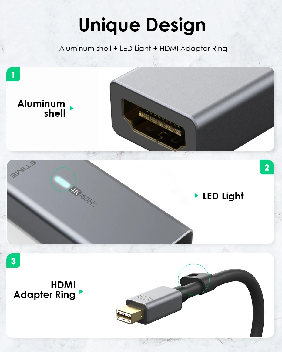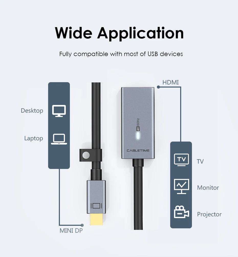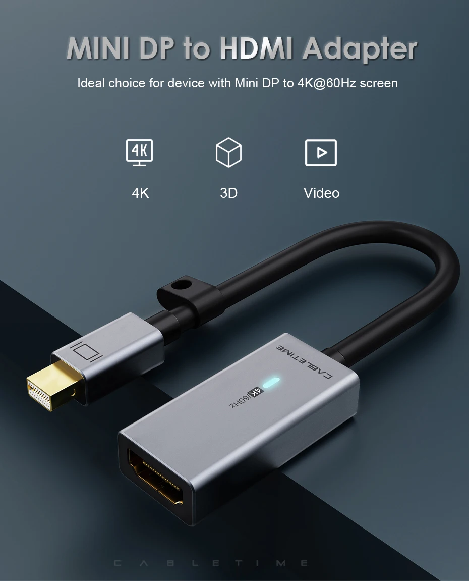 Comprar CABLETIME-adaptador Mini DisplayPort a 4K, convertidor LED DP a HDMI para MacBook Pro Air, iMac, proyector C206