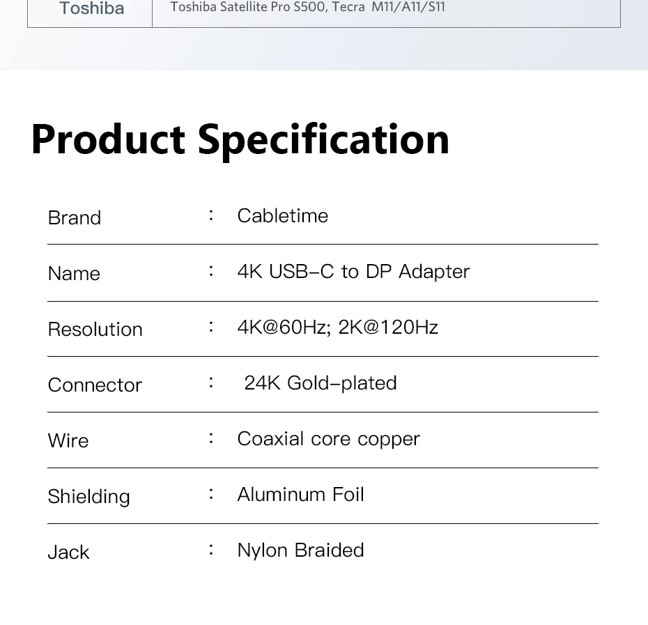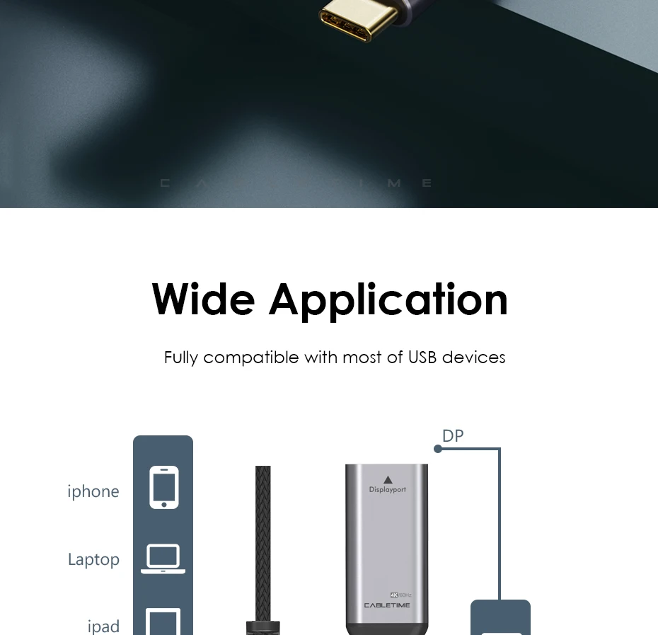 Comprar CABLETIME-Adaptador USB C a Displayport, convertidor 4K 60Hz USB 3,1 tipo C a DP para ordenador portátil, PC, Macbook Air, Dell, adaptador DP C331