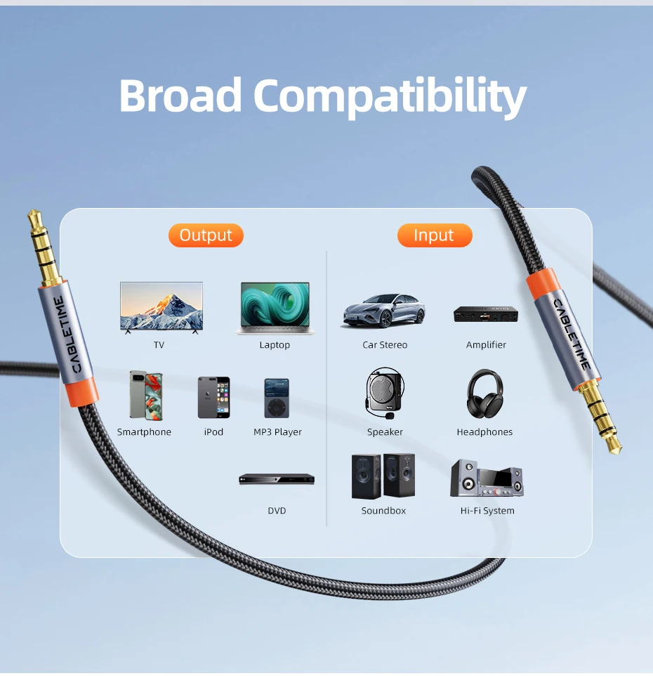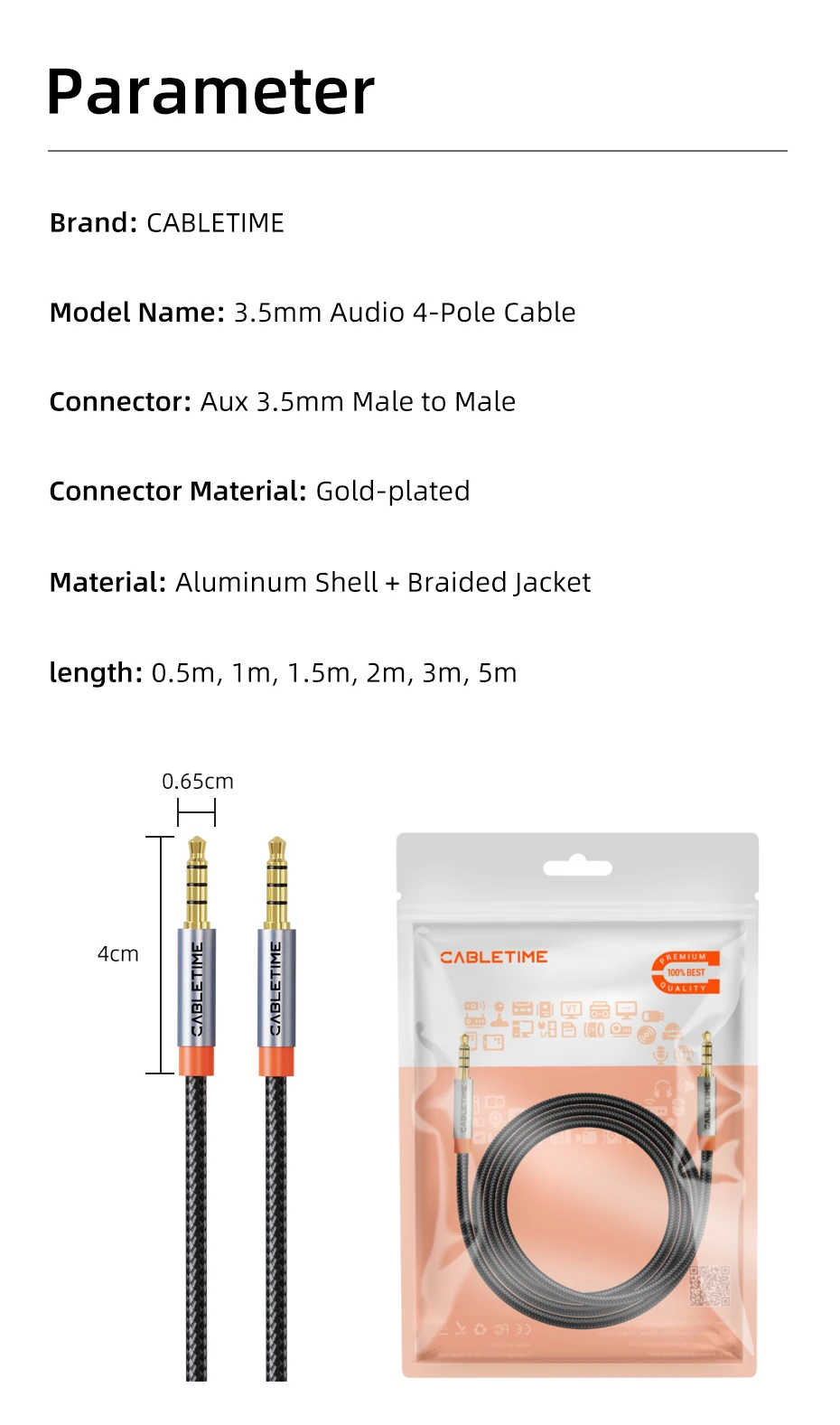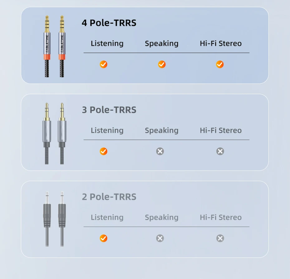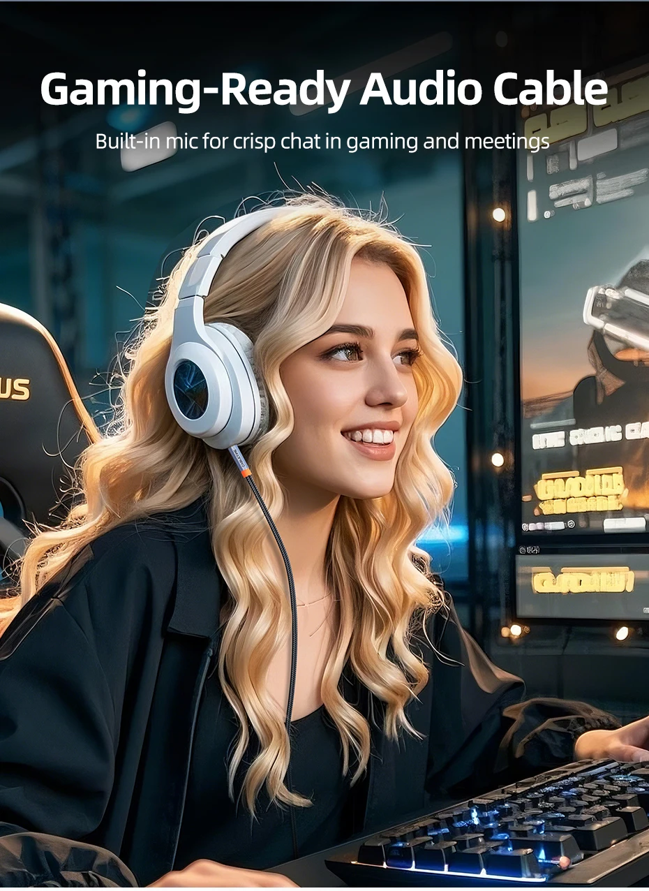 Visualmente es muy atractivo, además parece ser de buena calidad, pero... ¡No conduce sonido! Tanto cuando se utiliza con computadora, teléfono inteligente, altavoz o micrófono. Si de alguna manera se detecta, emite ruidos terribles. Definitivamente es mejor buscar otro cable.
