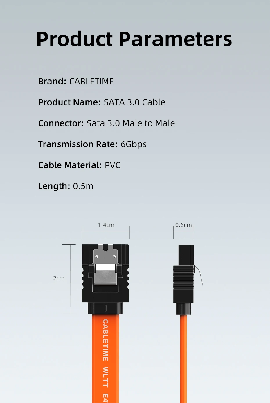 Siempre me gustan los productos "CableTime". -- Esta vez tomé 10 unidades. SATA-3 (6 Gbps) Pagué un poco más por ellos, pero en realidad pedí solo -3- de ellos, y los otros -7- eran con un ángulo regular. En Ali Express, a menudo puedes acordar combinaciones de productos similares (de la misma persona/tienda). Las propias tiendas lo escriben así, así que no dudes en preguntar. Tuve suerte. Vieron mi solicitud. "CableTime" - muchos envíos, pensé que era mejor preguntar no con antelación, sino durante el pago real. Todo está bien.