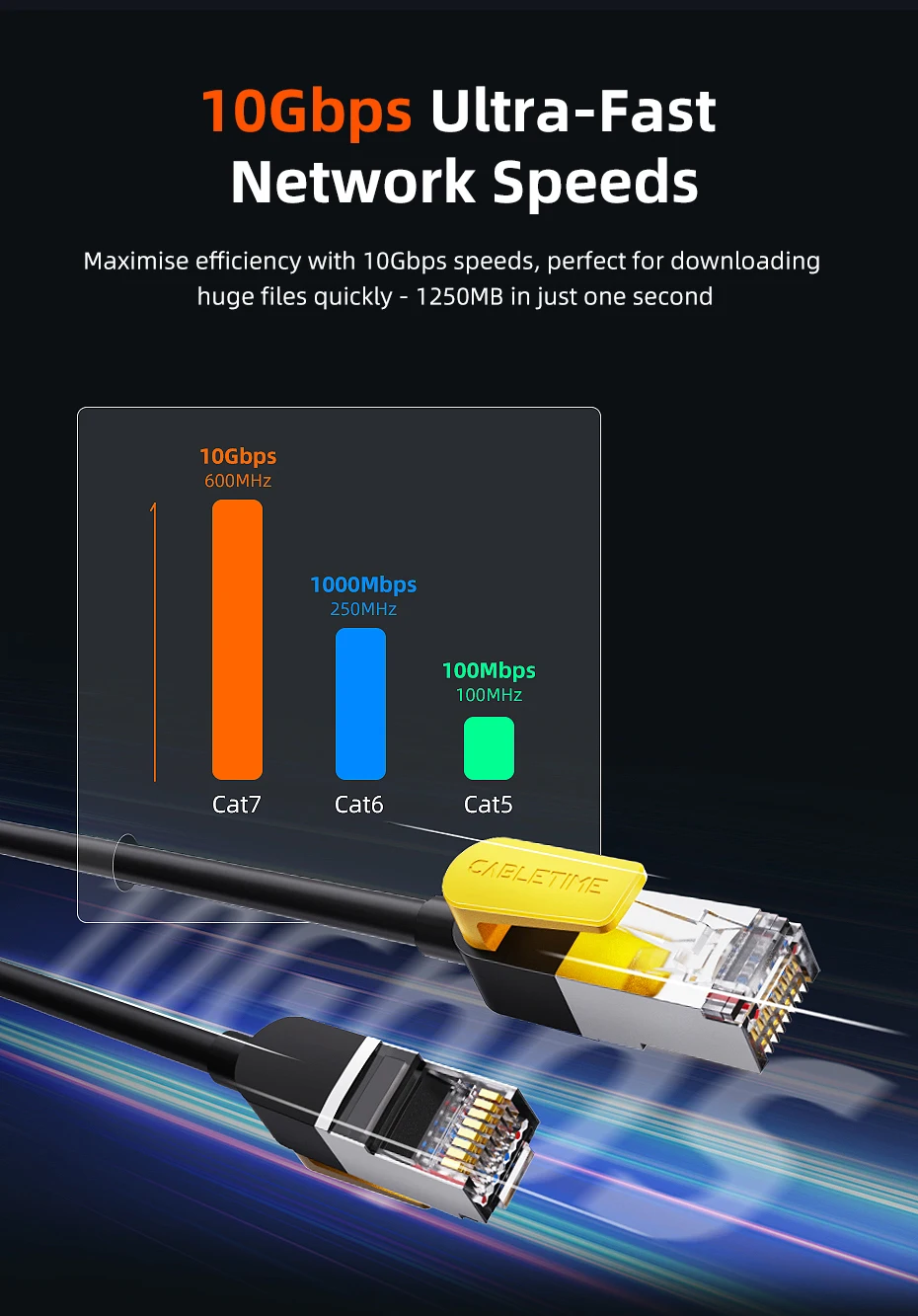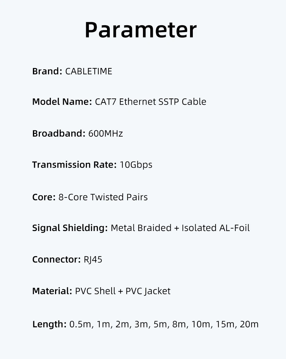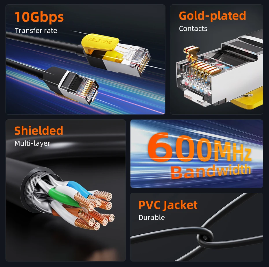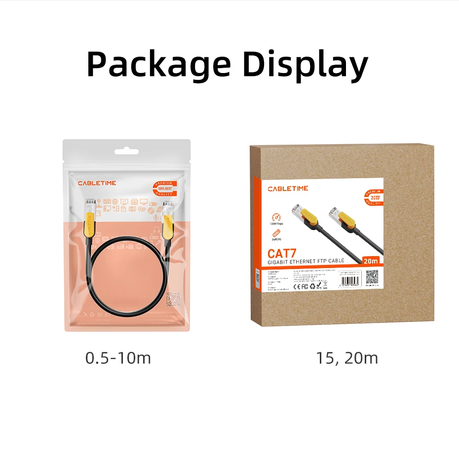 Comprar CABLETIME-Cable Ethernet Cat 7, Cable LAN RJ 45, Cable de red de 10gbps, Cable de Internet Cat 7 para enrutador, módem Ethernet, PC, PS4