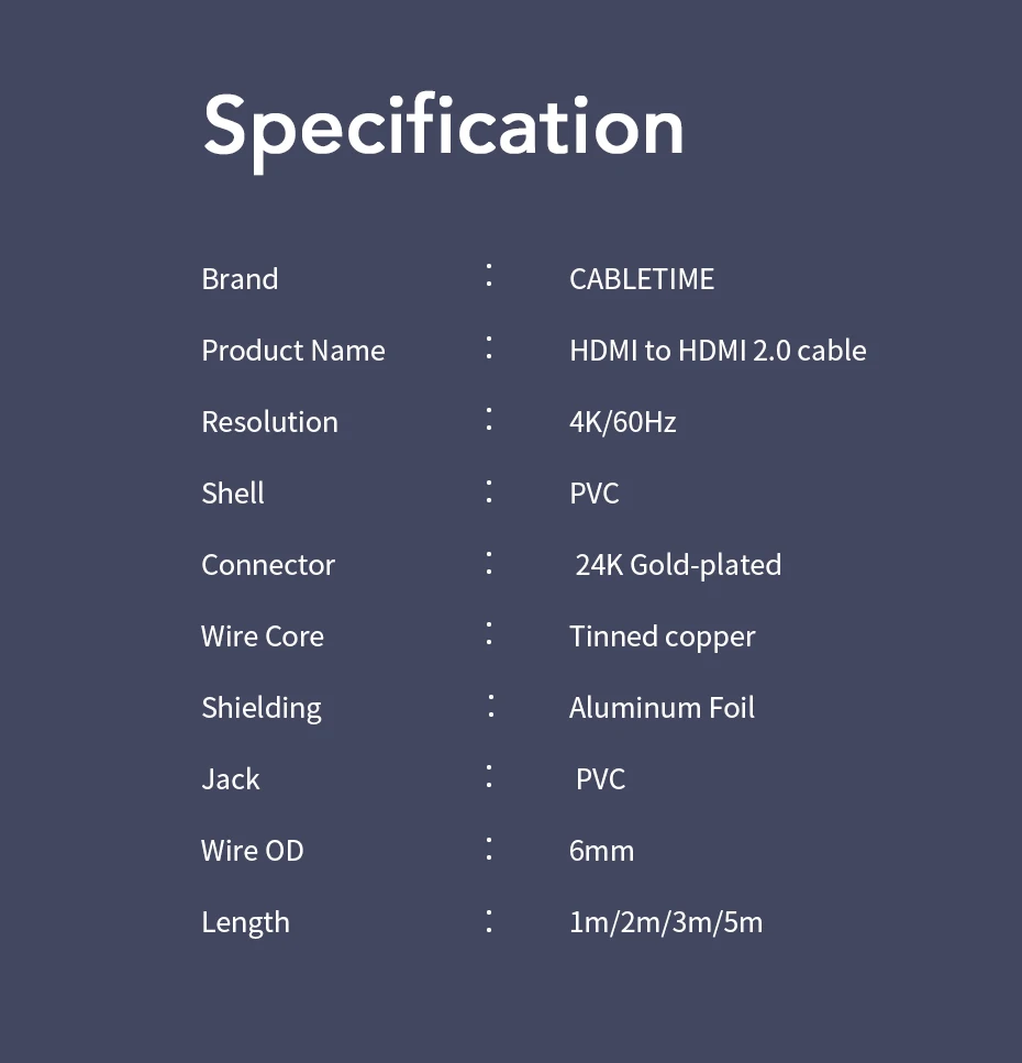 Comprar CABLETIME-Cable HDMI 2,0, 4k, 60Hz, UHD, para oficina, hogar, CL3, Xiaomi para proyector, Nintendo Switch, PS4, TV, C120