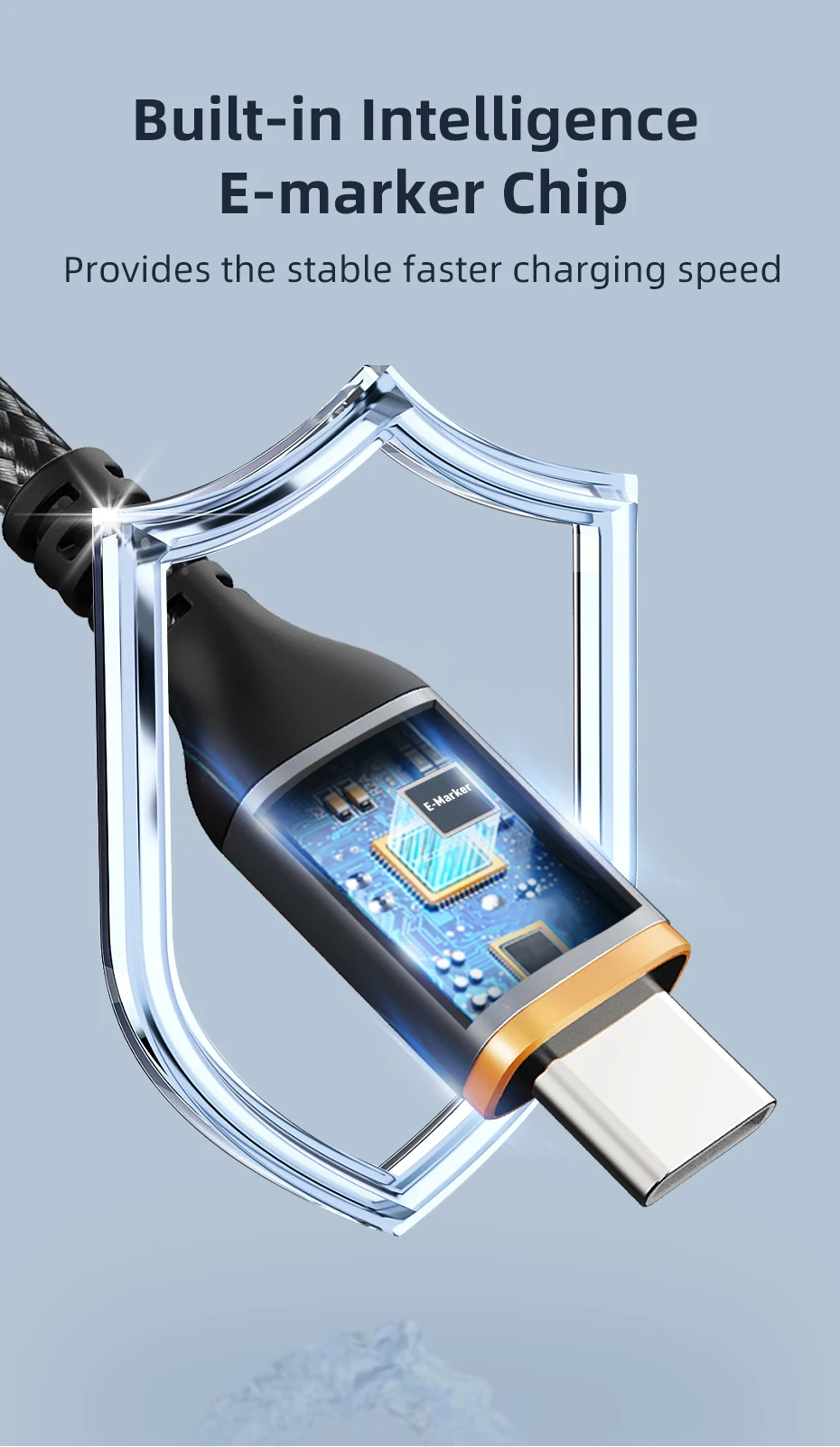 Con un chip inteligente E-marker para garantizar una carga segura y una velocidad de carga estable. Certificado por La Federación de Rusia, no dude en comprar.