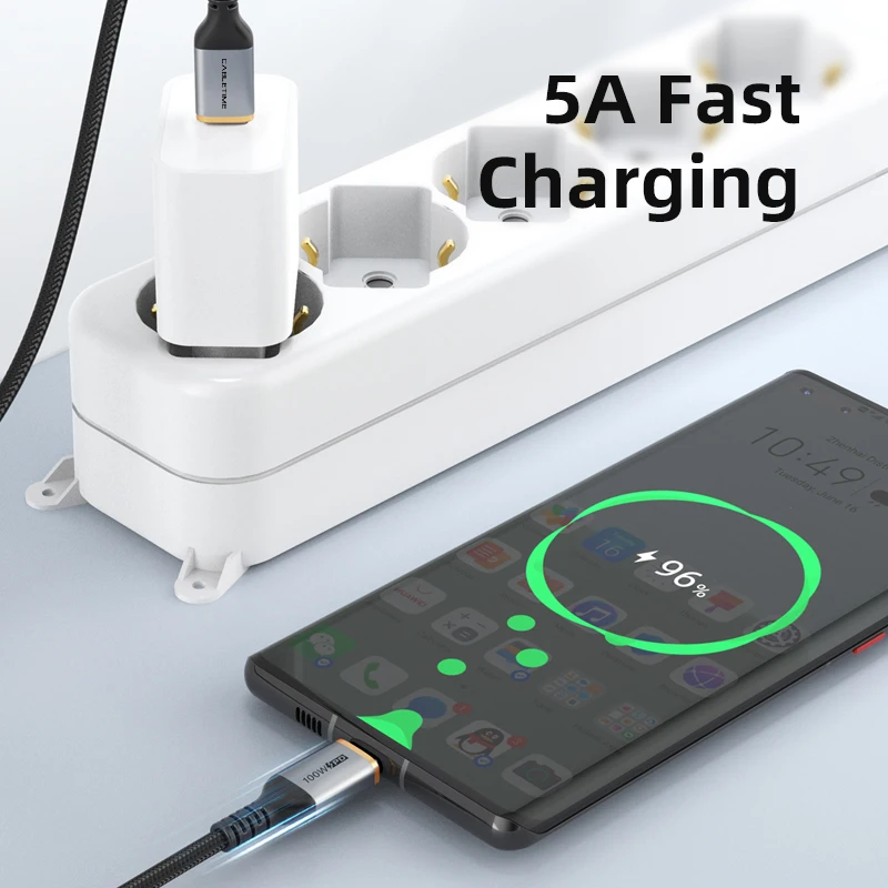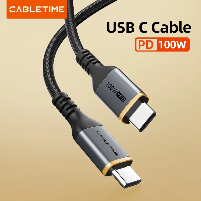 Comprar CABLETIME-Cable PD de 100W tipo C a USB C, carga rápida de 480Mbps, 5A, QC 4,0, Chip e-maker para Macbook Pro, Dell, ASUS C437