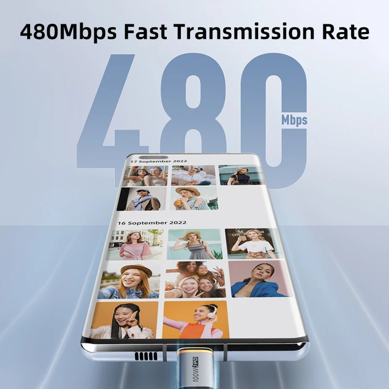 El cable de carga USB 2,0 proporciona velocidades de transferencia de hasta 480Mbps, hace que la transmisión de música, archivos, películas, etc. de un dispositivo USB C a otro sea muy fácil.
