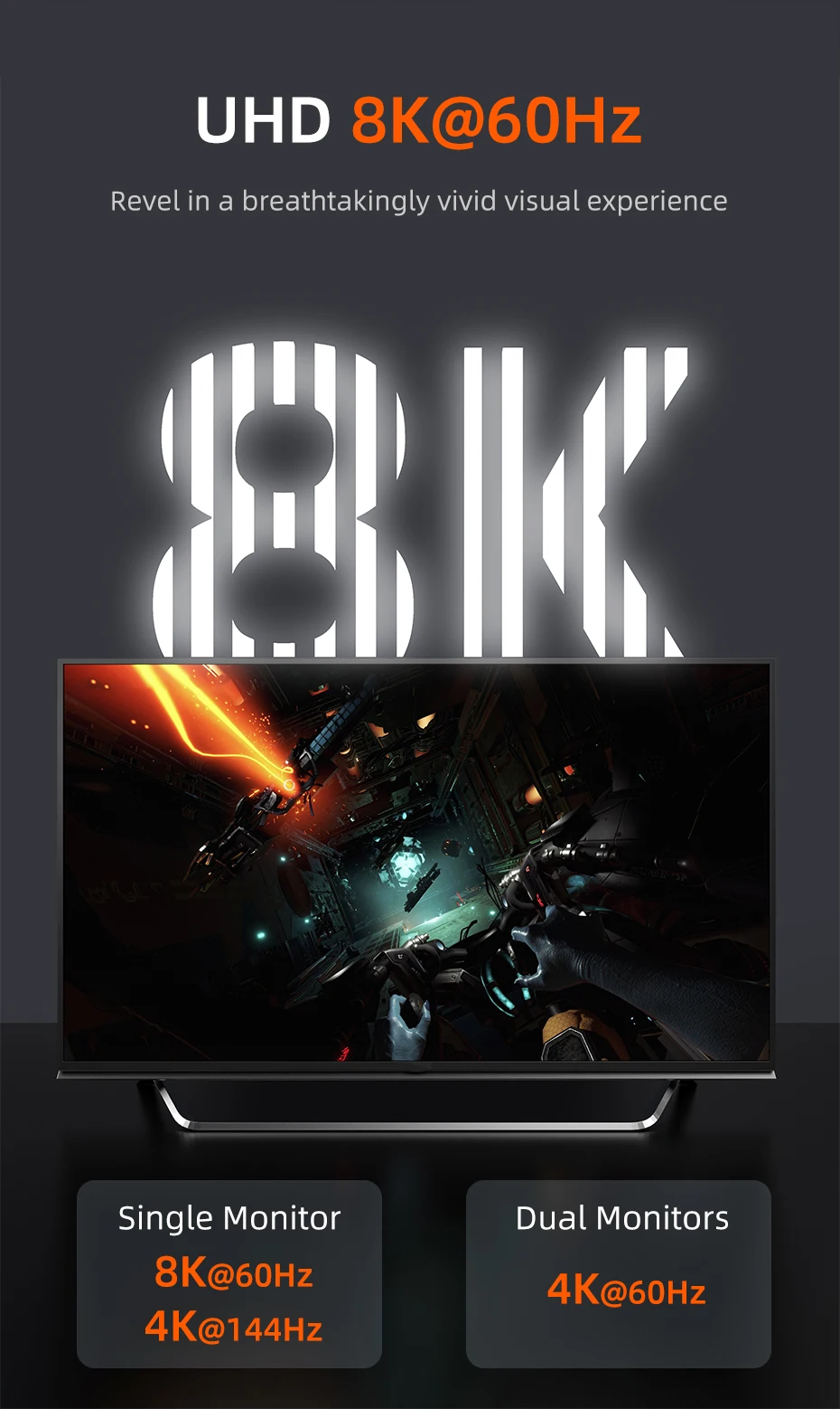 Transforma tu experiencia de visualización con una impresionante resolución de 8K a 60Hz o resolución ultra suave de 4K a 144Hz a través del cable USB 4. Ideal para configuraciones de monitor dual a 4K @ 60Hz, proporciona una experiencia de visualización fluida y de alta definición. Perfecto para profesionales y entusiastas por igual, este cable da vida a cada detalle, ya sea para tareas de trabajo complejas o entretenimiento inmersivo.