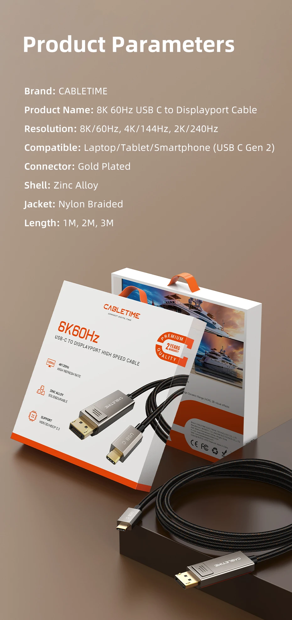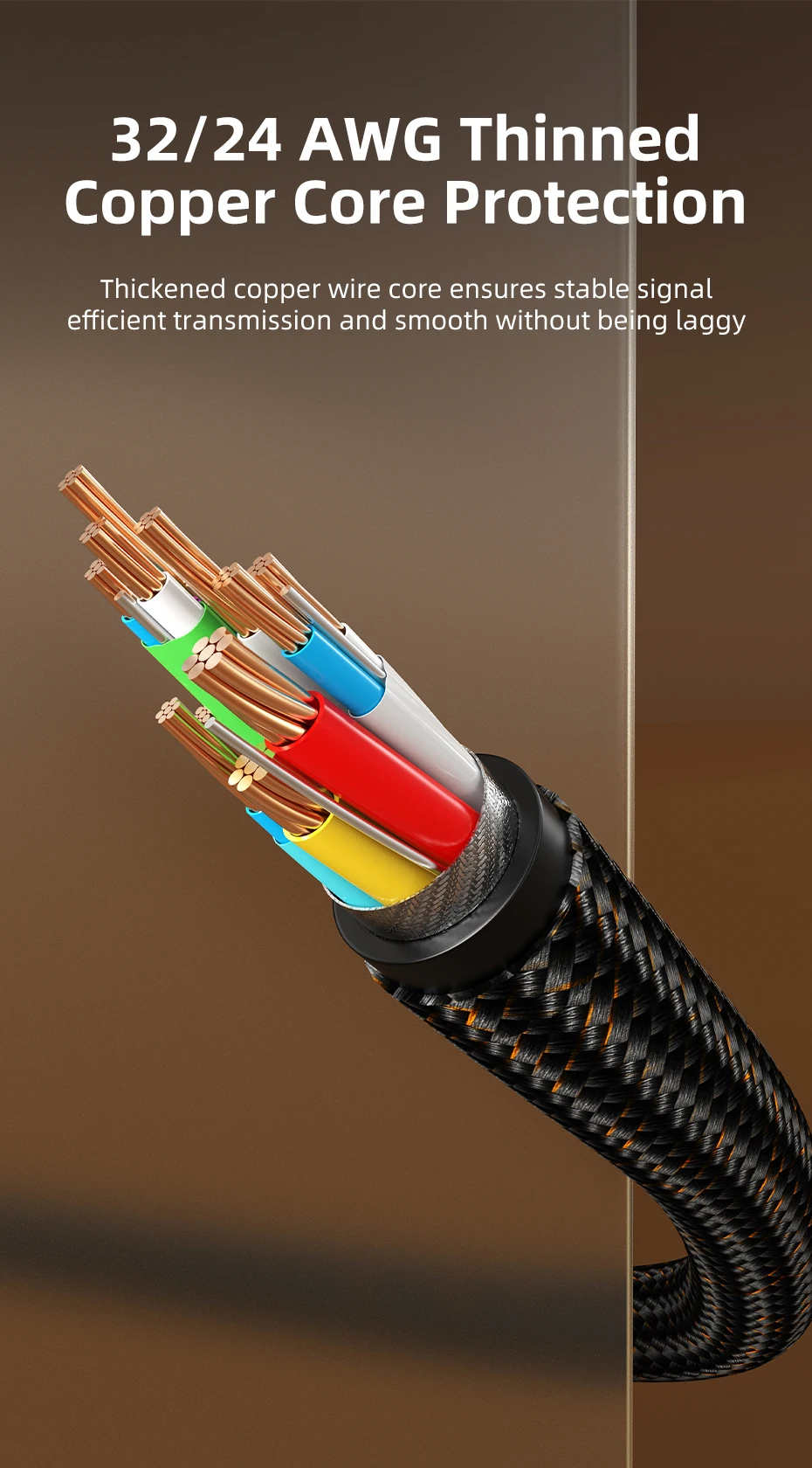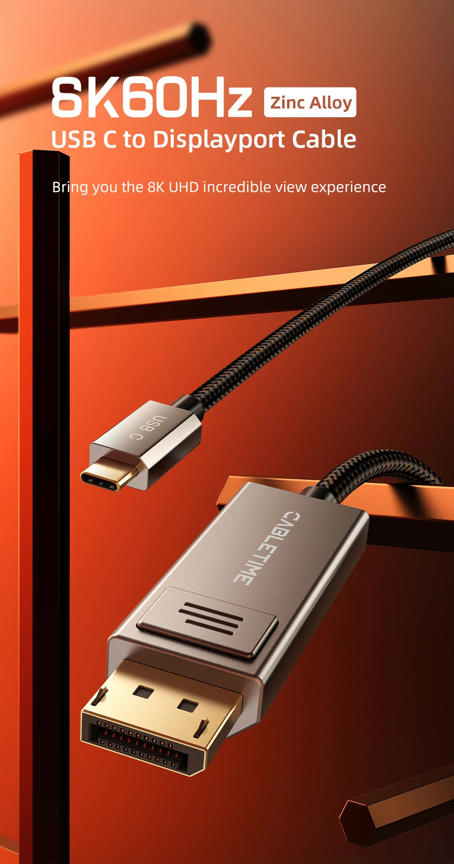 Con soporte para Video 8K 60Hz Ultra HD, 4K 144Hz y 2K 240Hz, este cable USB tipo C a DP elevará su experiencia visual. Ya sea una maratón de juegos, una noche de cine o una presentación de alto riesgo, sus imágenes serán nítidas, vibrantes y bellamente fluidas. ¡Diga adiós a las imágenes pixeladas o borrosas y sumérjase en detalles realistas!