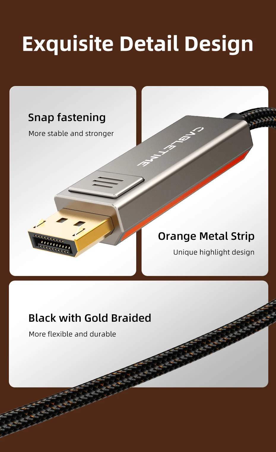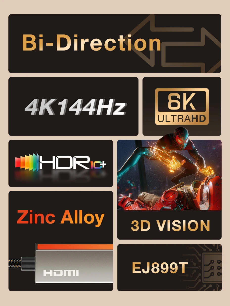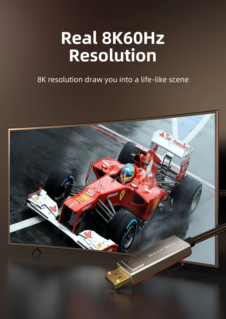 Adéntrese en un nuevo mundo de experiencias visuales vívidas e inmersivas.Nuestro cable admite vídeo Ultra HD 8K 60Hz, alta frecuencia de actualización 4K de 144 Hz y 2K 240 Hz.Da vida a tus juegos, a tus películas y a tus presentaciones.El mayor detalle y la profundidad del color cautivarán tus sentidos y te harán sentir como si estuvieras parte de la escena.