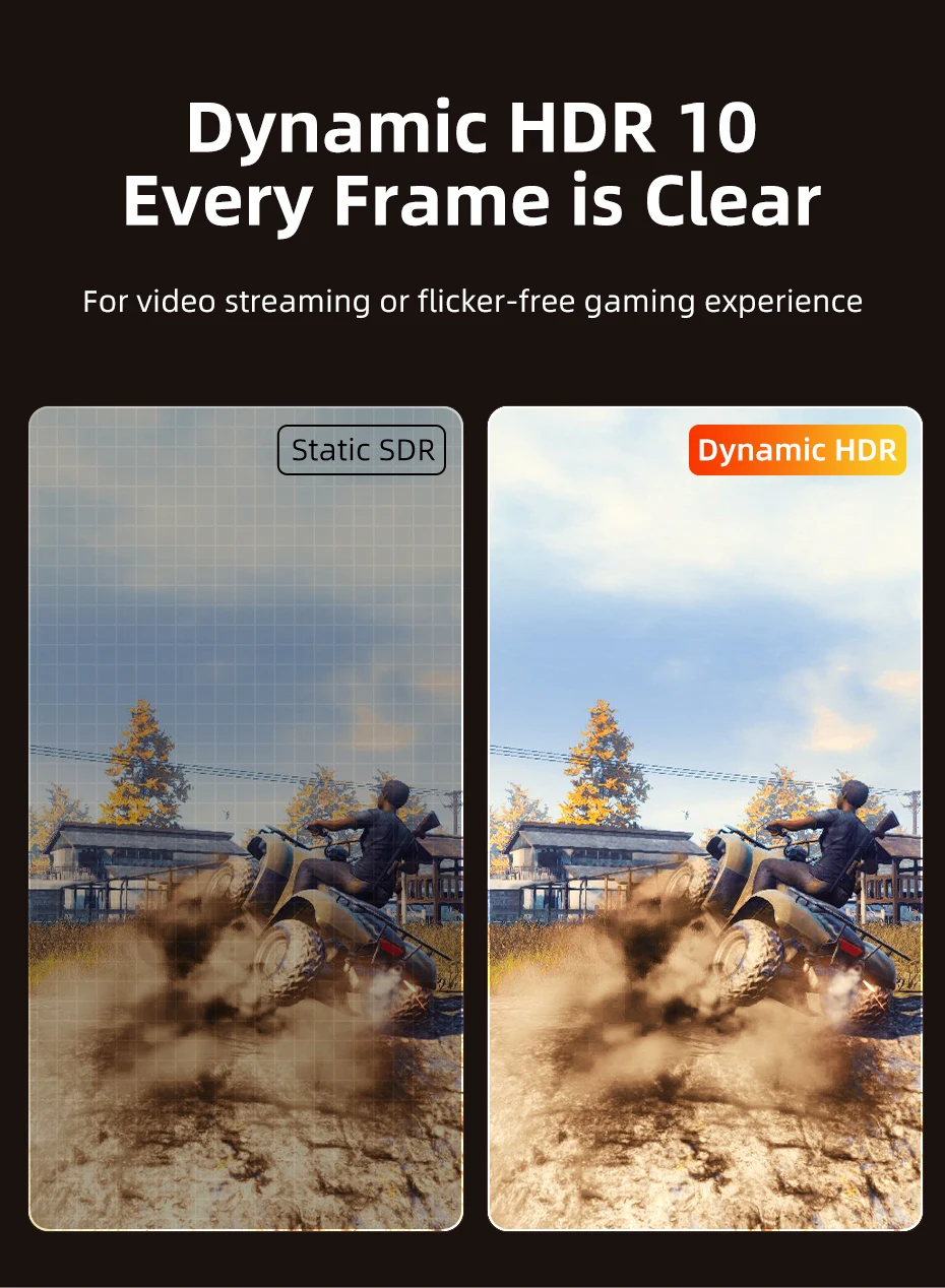 El cable DisplayPort a USB C bidireccional de cable es compatible con Dynamic HDR 10 para garantizar que cada fotograma de su video sea nítido y que cada color sea mejorado para su placer de visualización.Sumérgete en un mundo de colores vibrantes y un contraste más nítido para una experiencia visual sin precedentes que hace que tu contenido sea más dinámico y atractivo.
