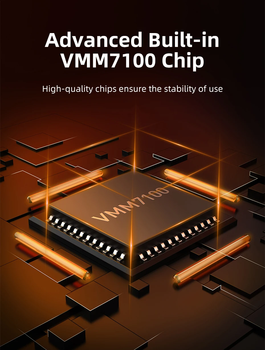 El cable USB C a HDMI tiene un chipset VMM7100 incorporado que ayuda a transferir datos de forma rápida y fluida.Esto significa que puedes ver tu contenido sin interrupciones ni retrasos.