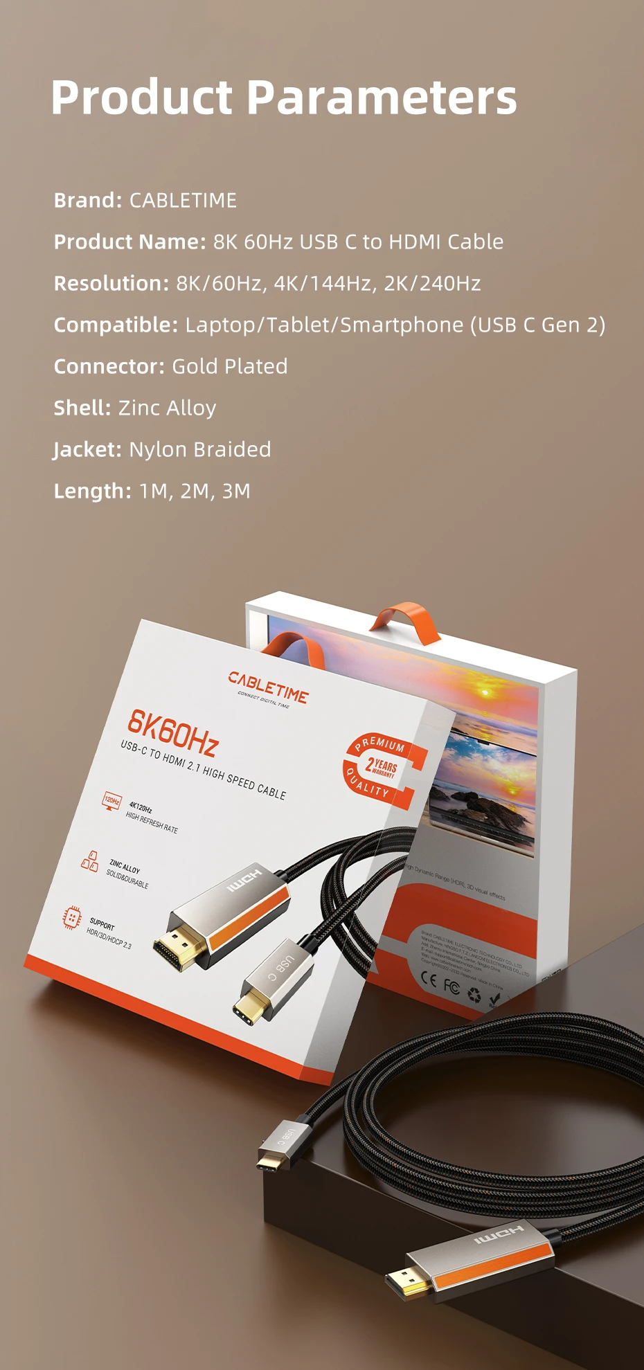 Este cable USB-C a HDMI admite resoluciones de hasta 8K a 60 Hz y 4K a 120 Hz, brindando imágenes nítidas con colores vibrantes y movimiento suave.Disfrute de películas, juegos y presentaciones con imágenes impresionantes y detalles realistas.