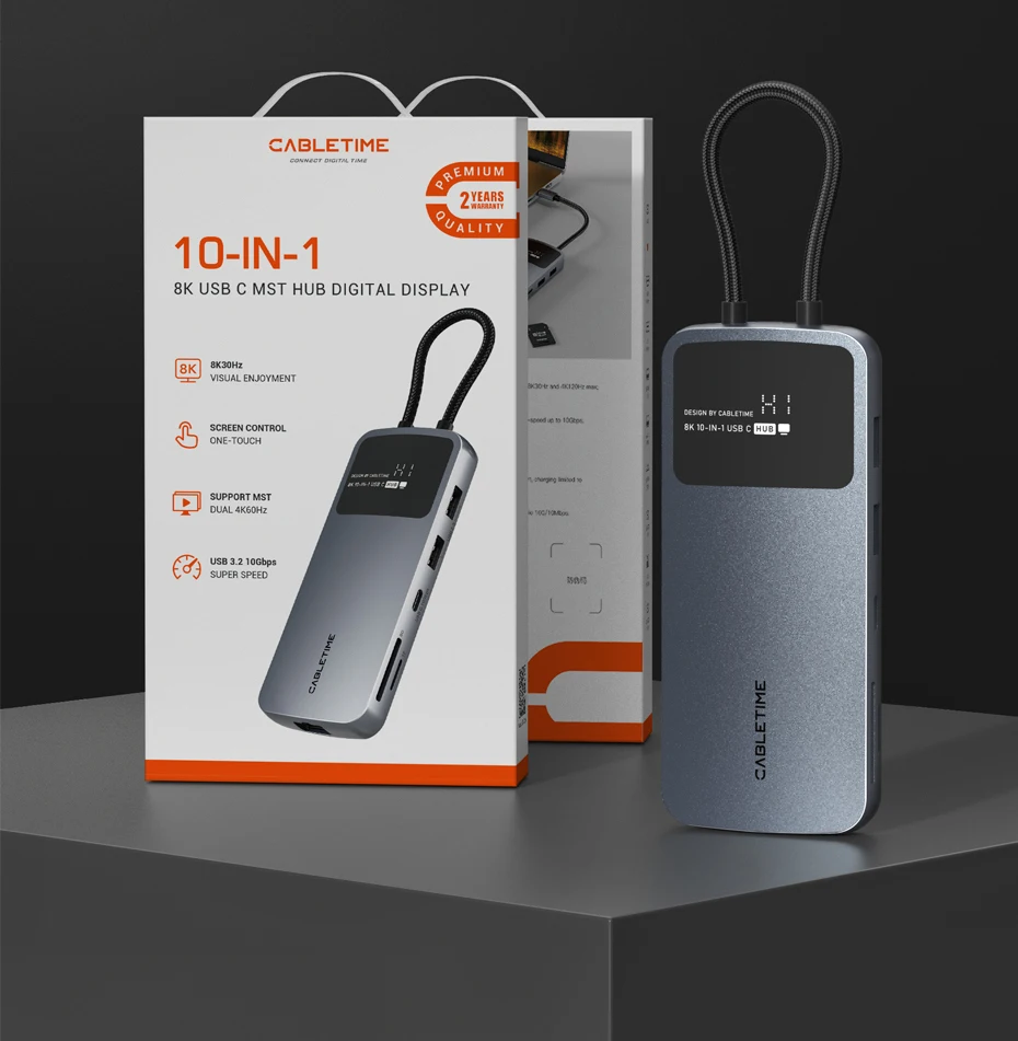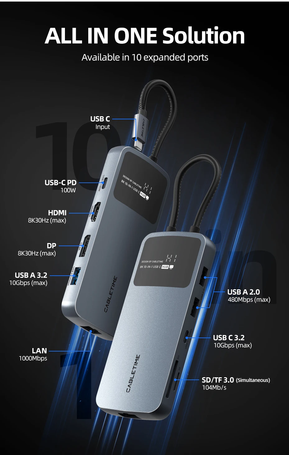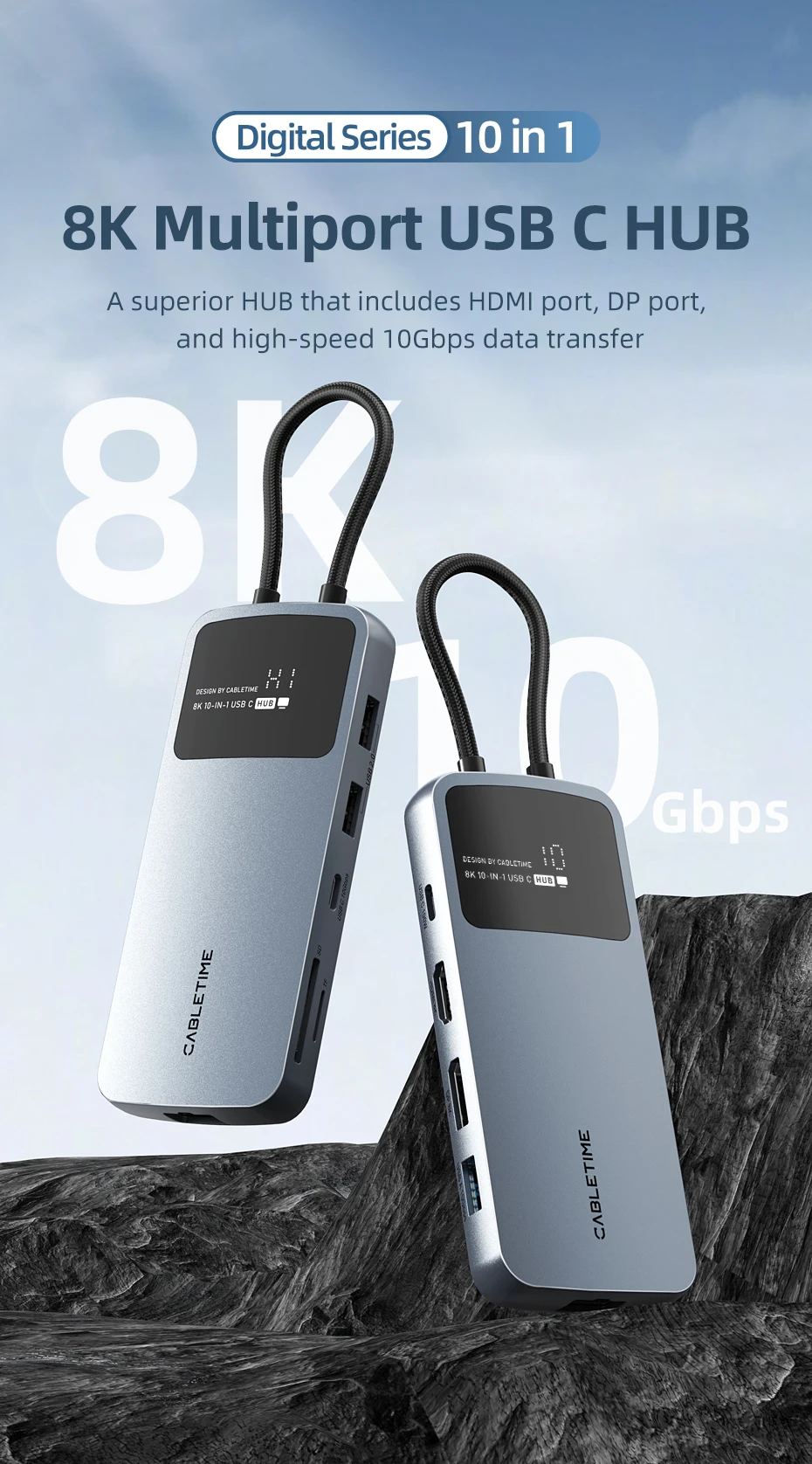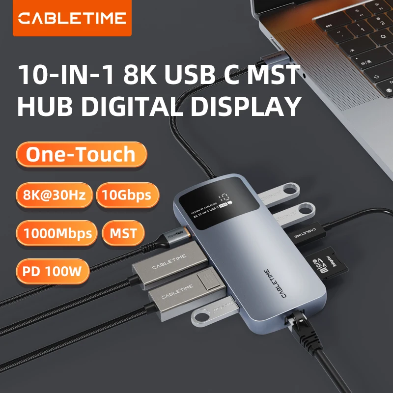 Comprar CABLETIME-concentrador de puertos USB 10 en 1, adaptador de base para MacBook ASUS, 8K, MST, Displayport, HDMI, RJ45, 1000Mbps, 10Gbps, PD100W, C471