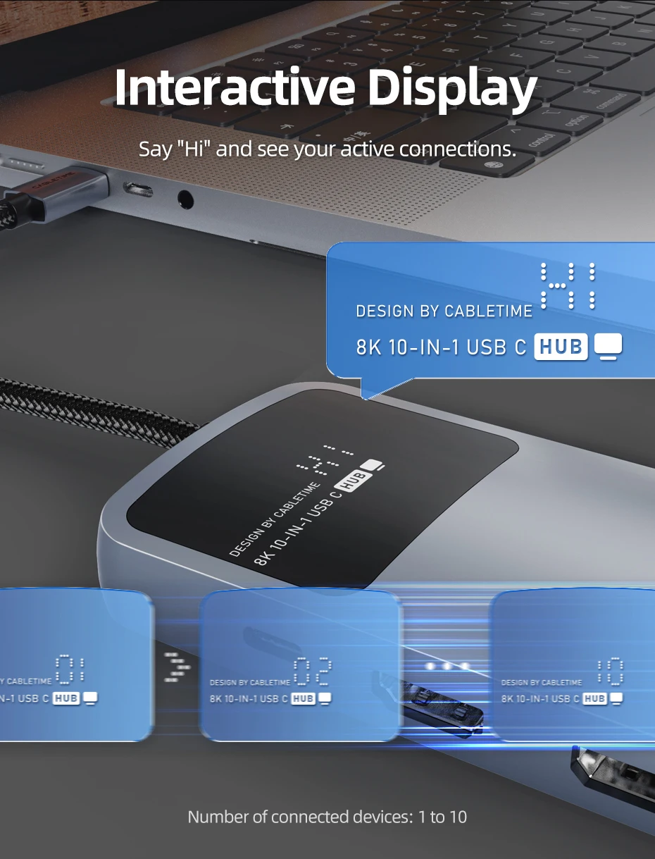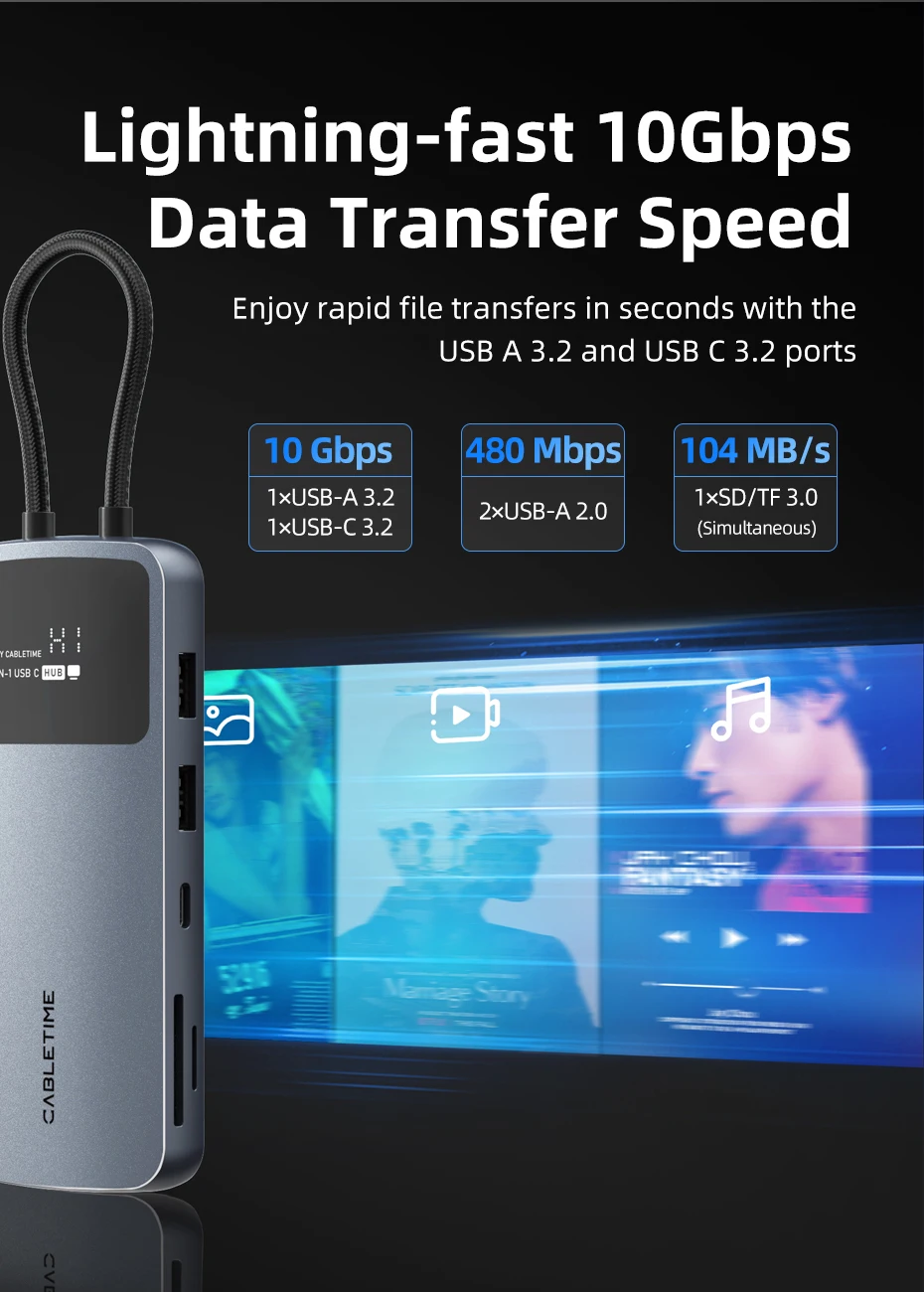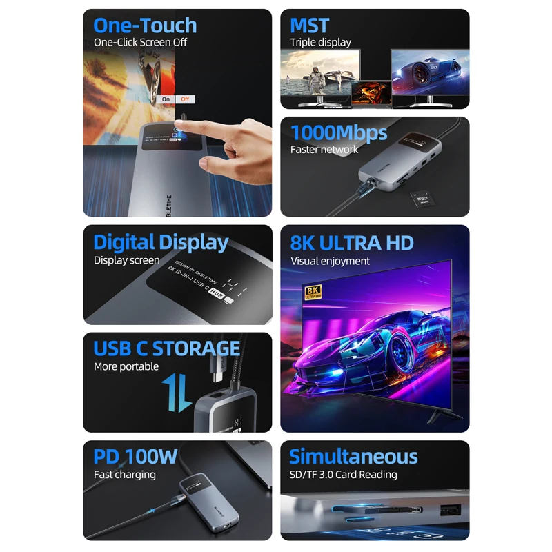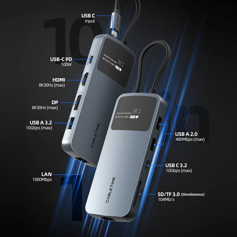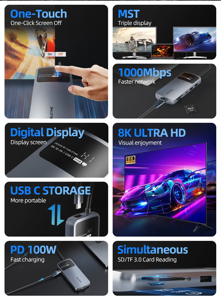 Comprar CABLETIME-concentrador de puertos USB 10 en 1, adaptador de base para MacBook ASUS, 8K, MST, Displayport, HDMI, RJ45, 1000Mbps, 10Gbps, PD100W, C471