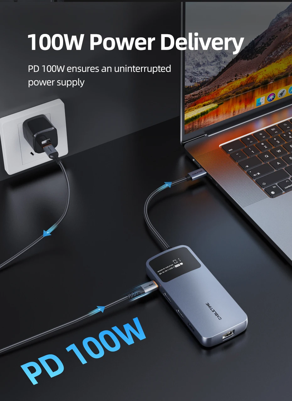 No se preocupe por quedarse sin energía con este concentrador USB C. Admite una carga rápida de 100W, para que pueda obtener el jugo que necesita de forma rápida y fácil. Disfrute de la tranquilidad de saber que puede encenderse rápidamente y volver a hacer lo que ama.