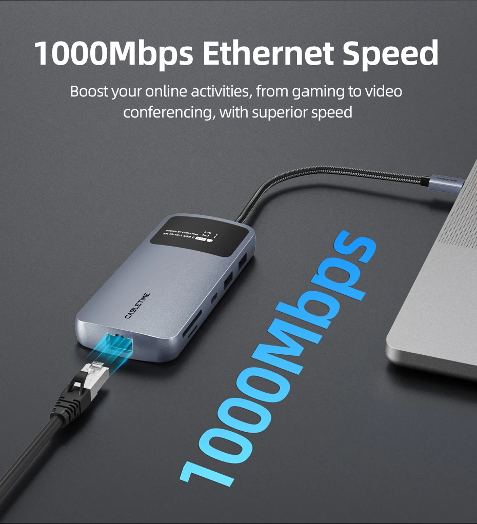 Experimente una conexión a Internet fiable y de alta velocidad con el concentrador USB C, con Gigabit Ethernet de 1000Mbps. Perfecto para jugadores y streamers que requieren conexiones rápidas y estables.