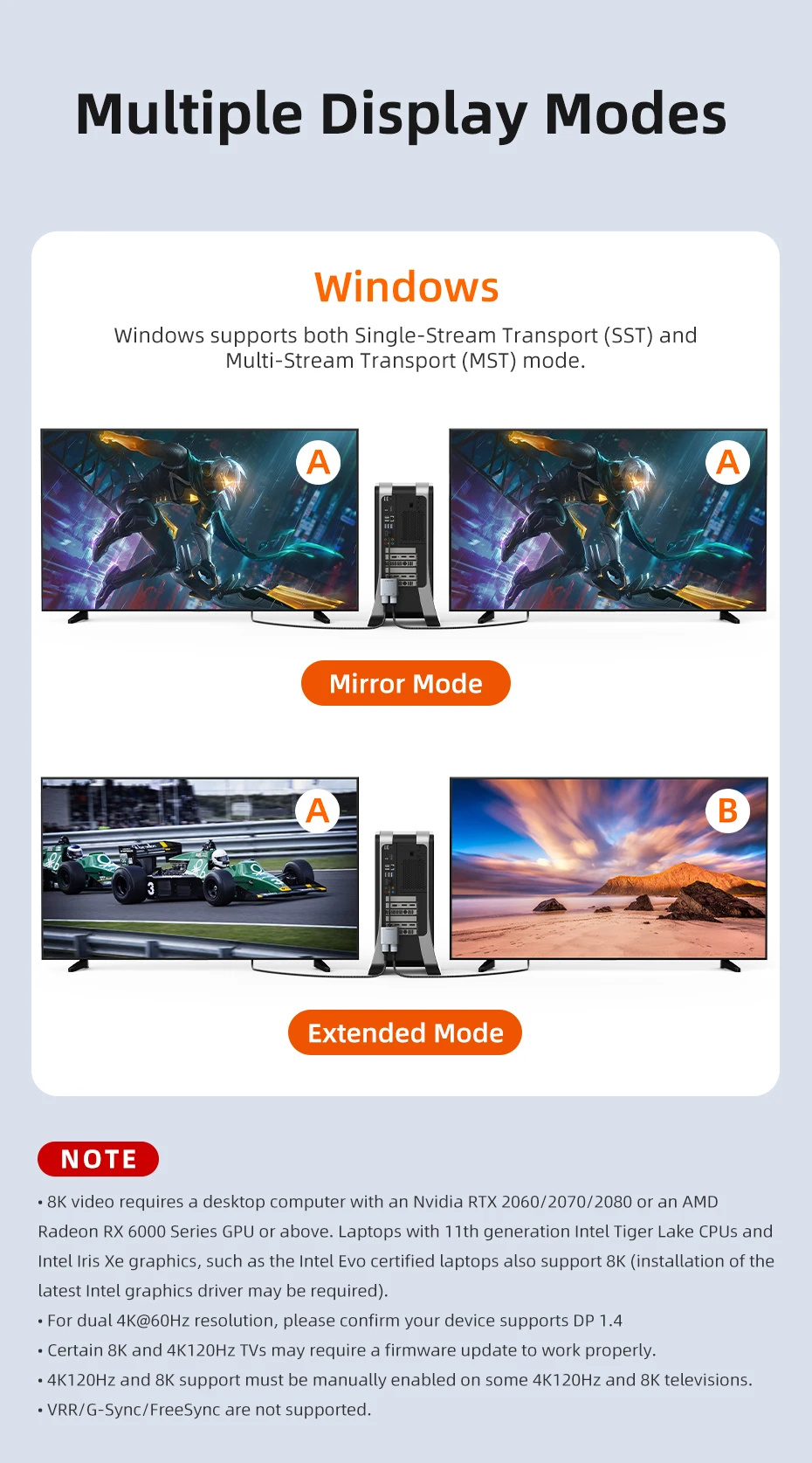 ● La compatibilidad con 4K 120Hz y 8K debe habilitarse manualmente en algunos televisores 4K1 20Hz y 8K.