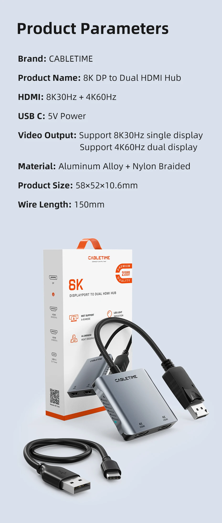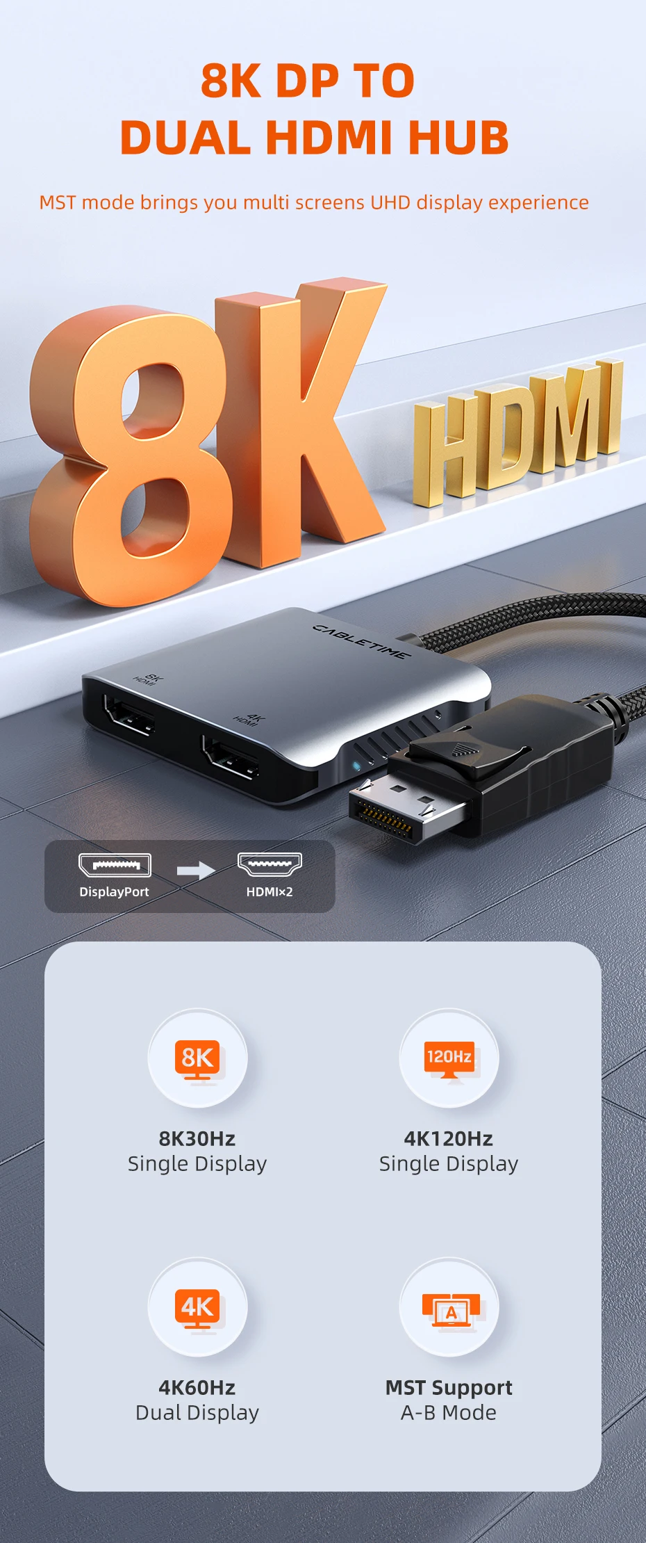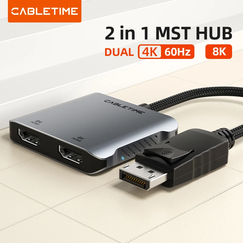 Comprar CABLETIME-HUB Displayport a HDMI 8K MST 4K 60Hz, pantalla Dual UHD, luz LED para escritorio Nvidia Radeon C443