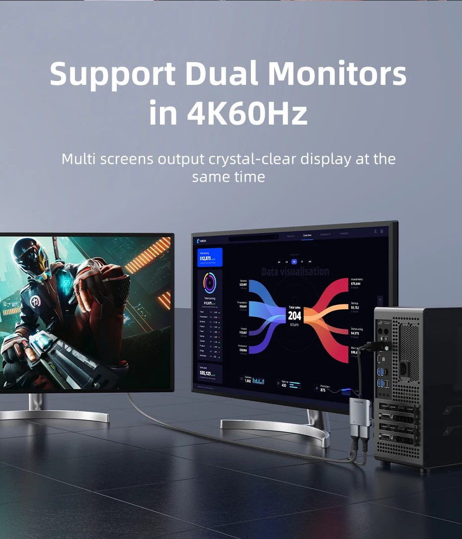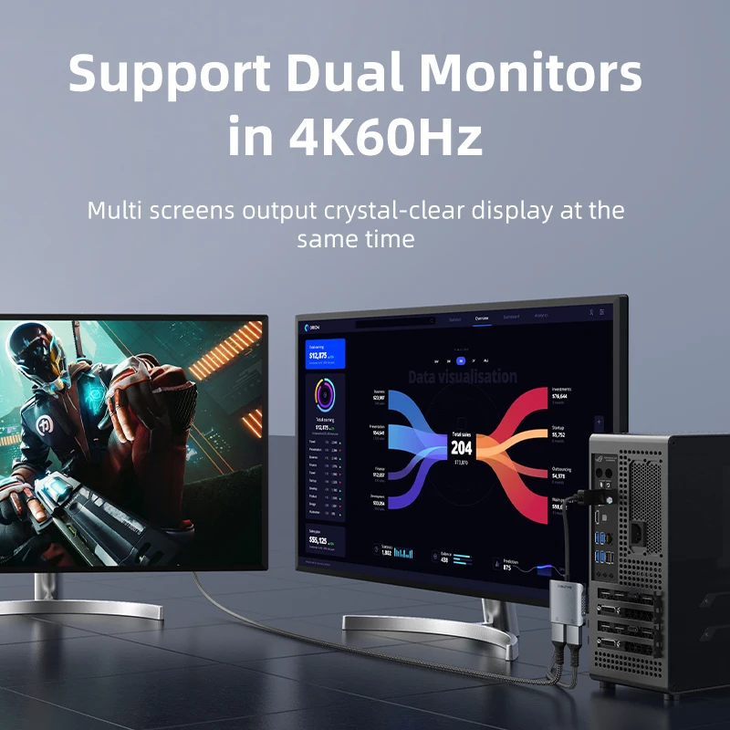 Este concentrador DP a HDMI dual es muy fácil de usar, sin necesidad de instalar software o controladores, simplemente conéctelo, luego puede disfrutar de la alegría de múltiples pantallas