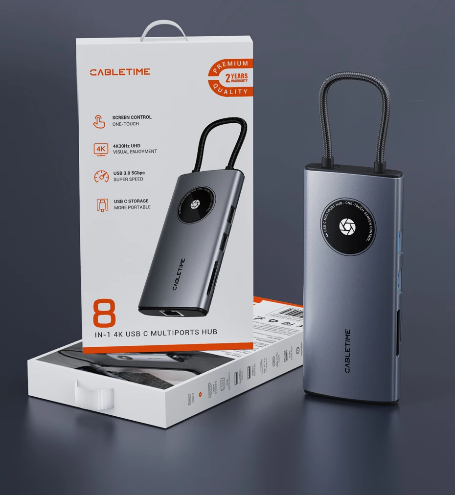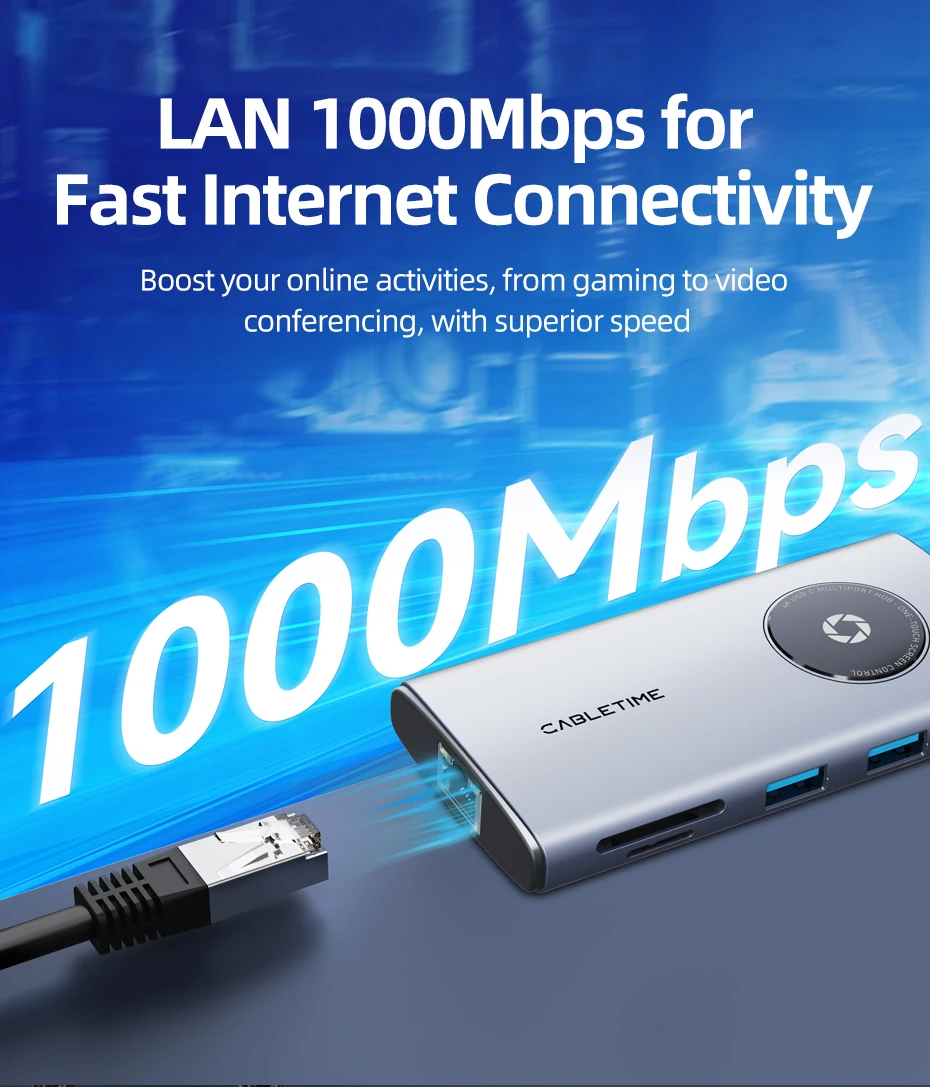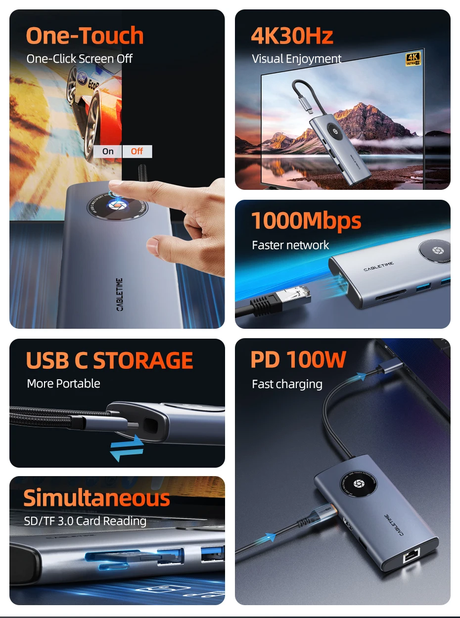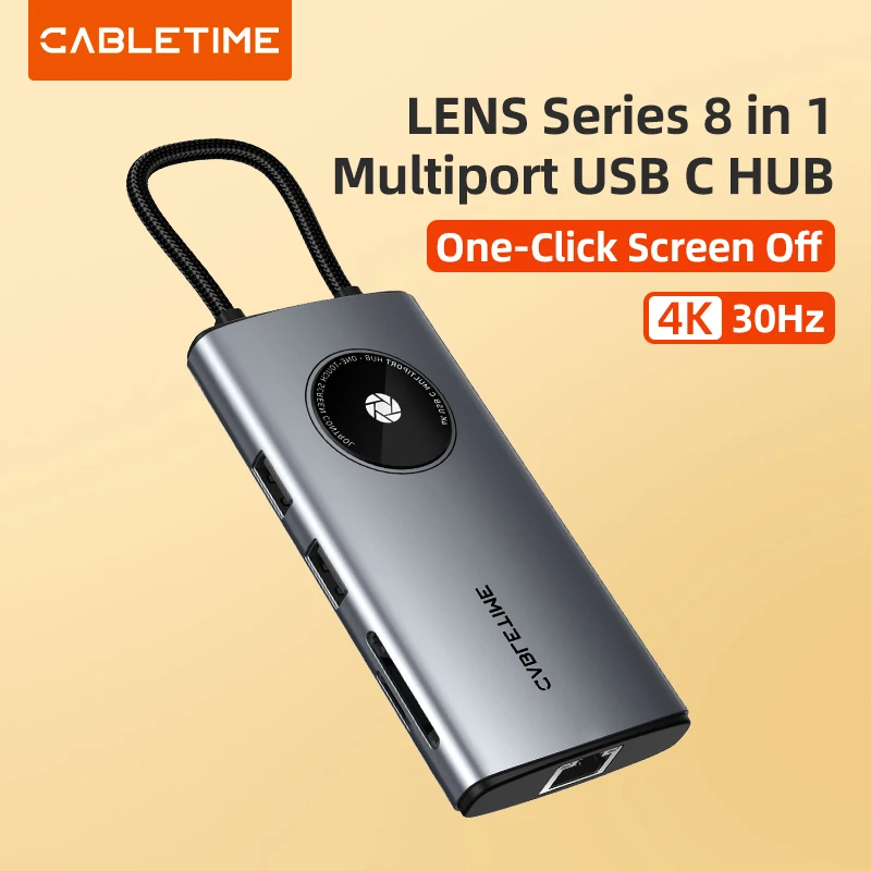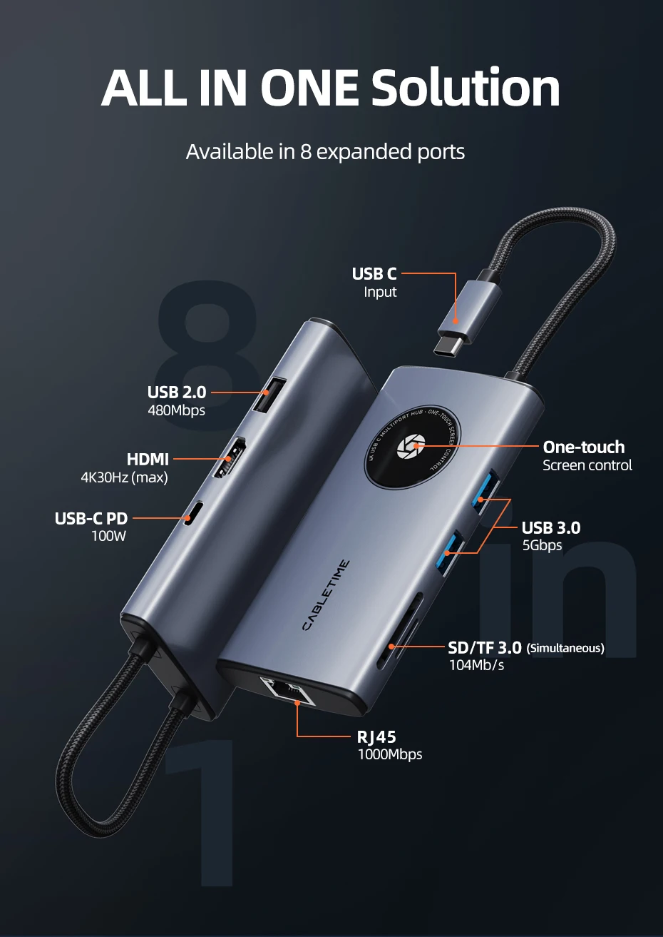 Comprar CABLETIME-HUB USB tipo C 8 en 1 a HDMI, 4K, 30Hz, LAN, 1000Mbps, ranura para Carder SD, diseño One Touch, almacenamiento USB C, C464