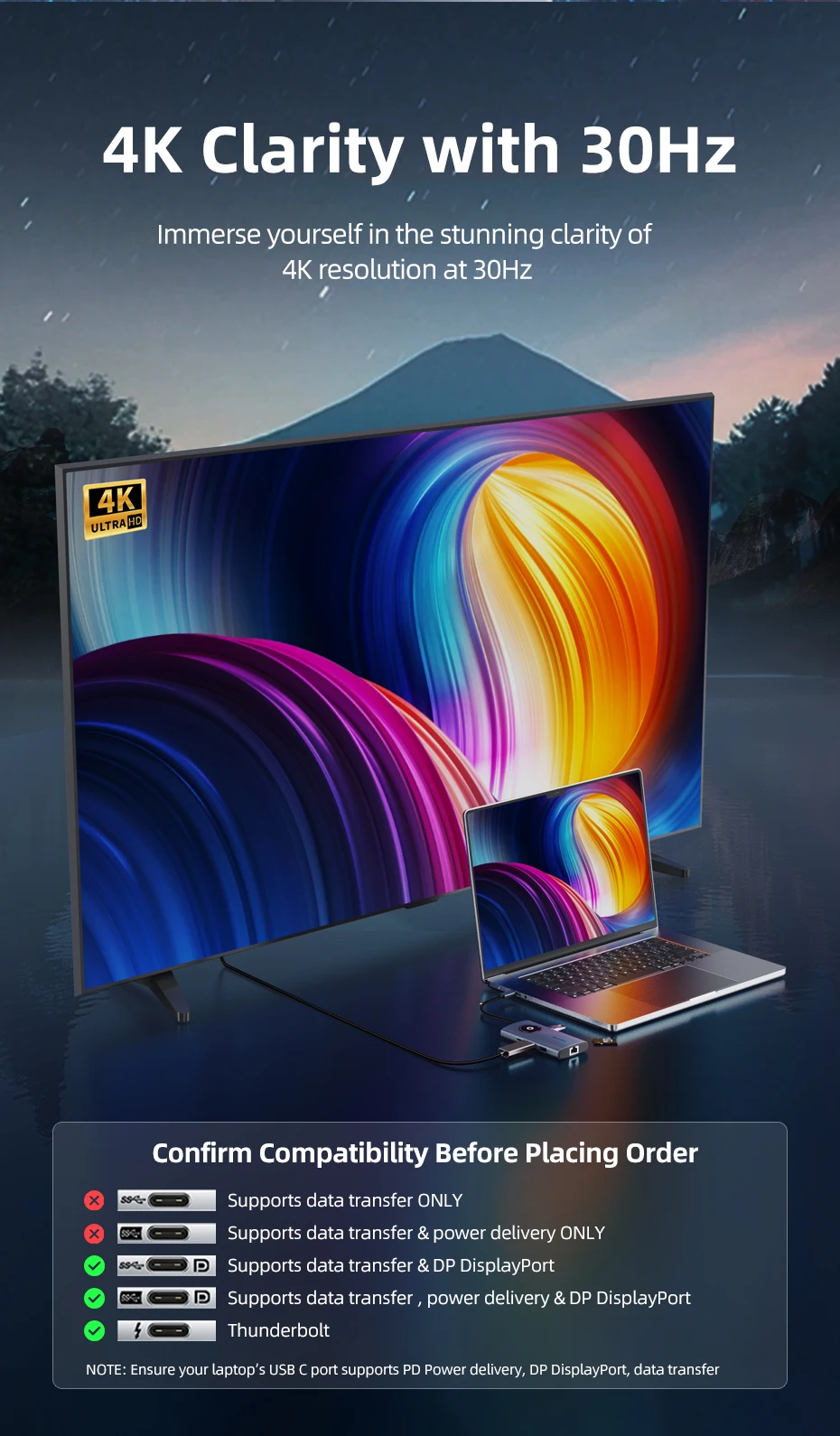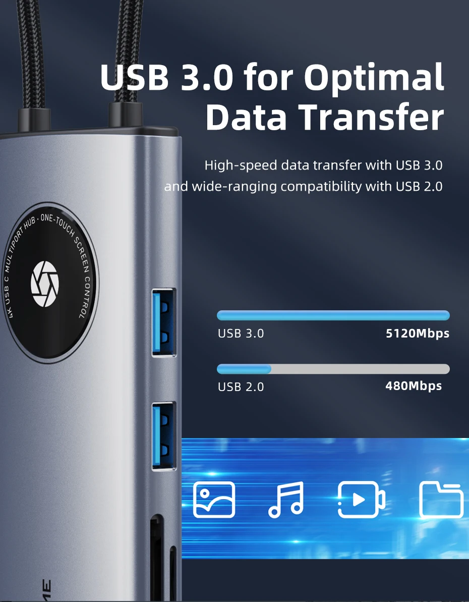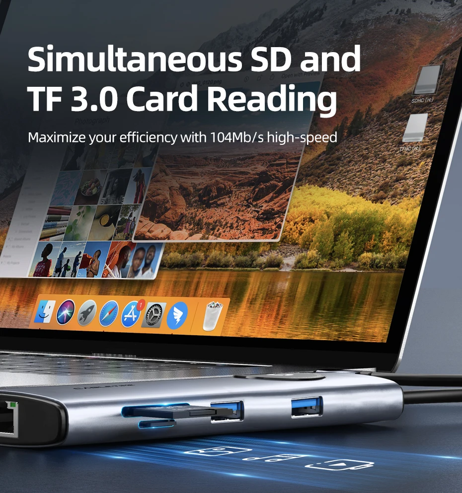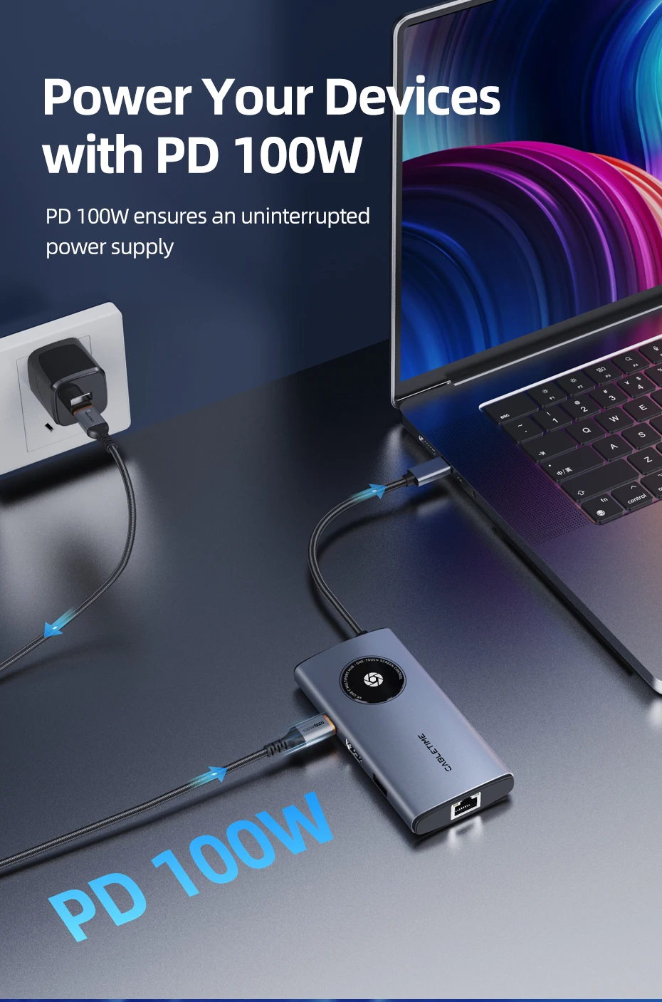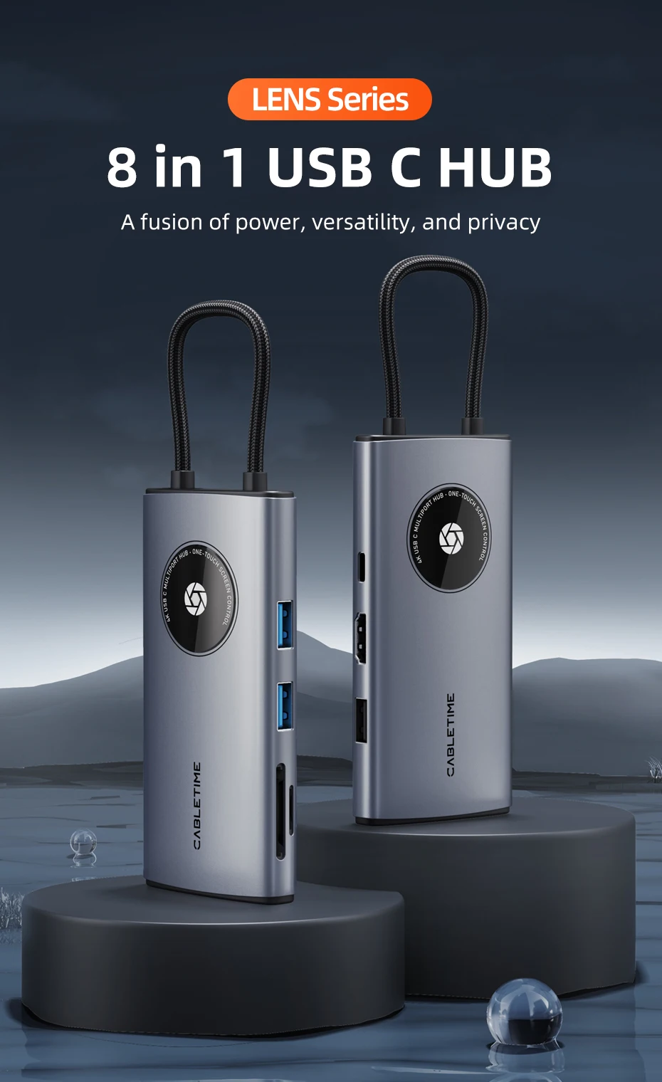 Comprar CABLETIME-HUB USB tipo C 8 en 1 a HDMI, 4K, 30Hz, LAN, 1000Mbps, ranura para Carder SD, diseño One Touch, almacenamiento USB C, C464