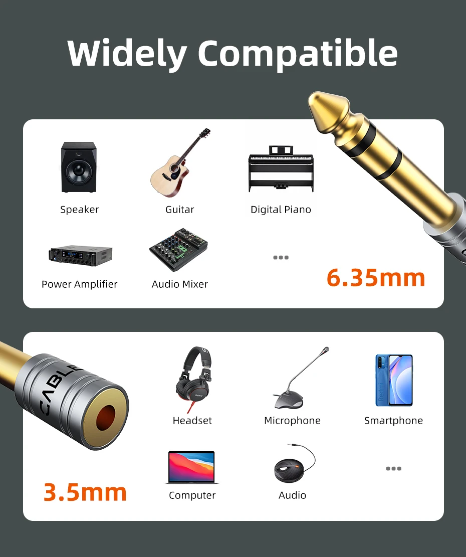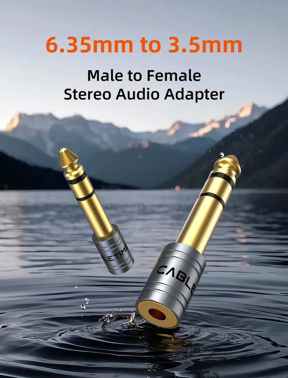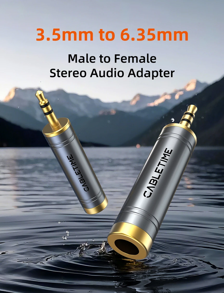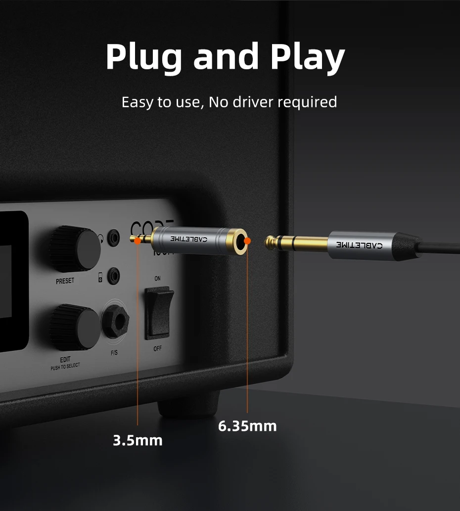 CABLETIME Jack 3,5 mm a 6,35 mm Micrófono Enchufe de audio para amplificador Altavoz Cable auxiliar Conector de 3,5 mm Aux a 6,35 mm Adaptador eléctrico