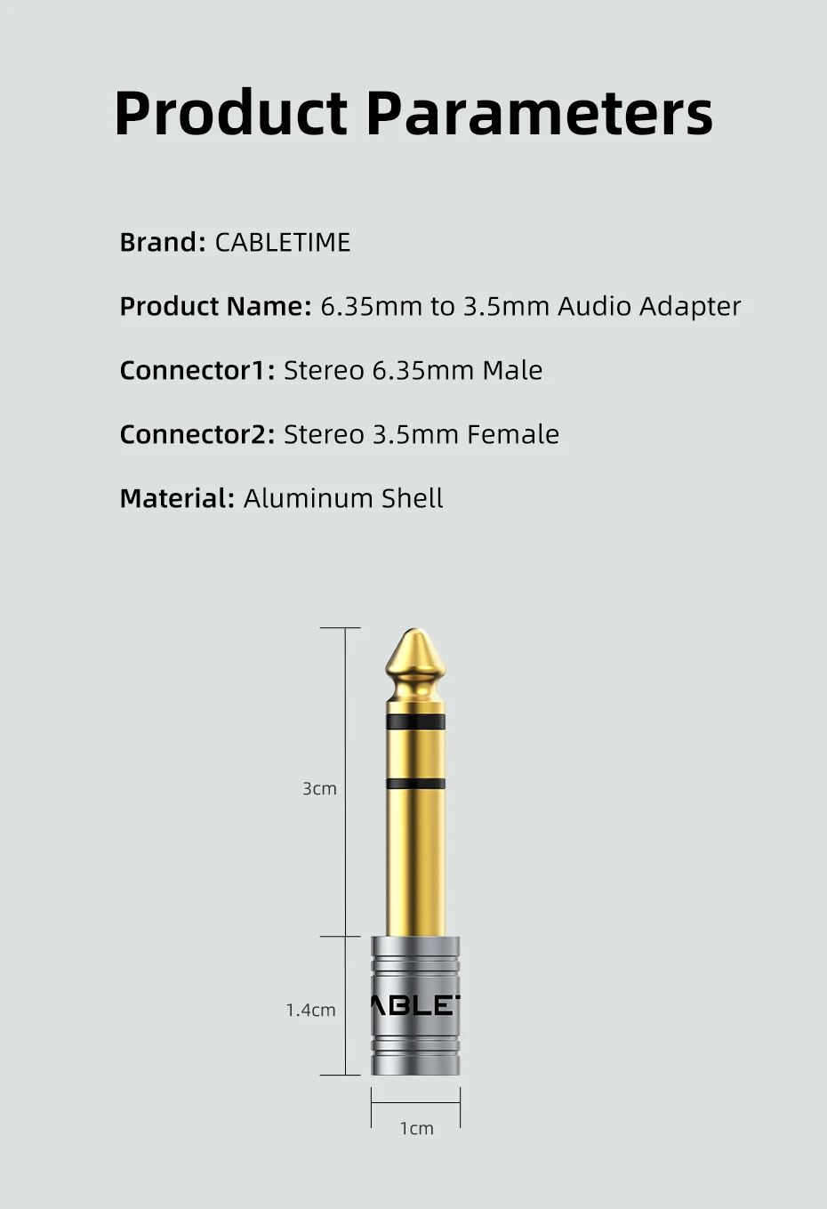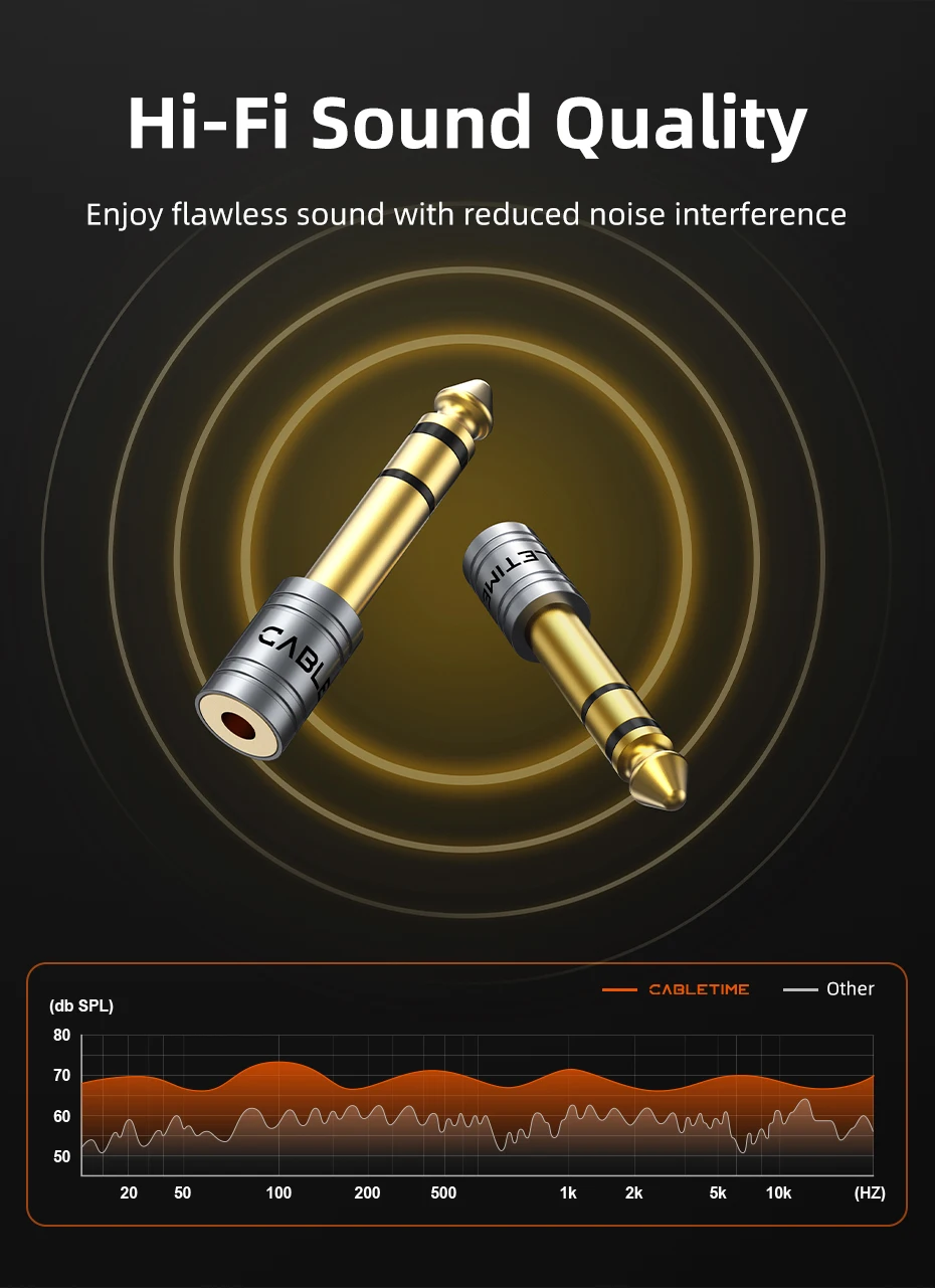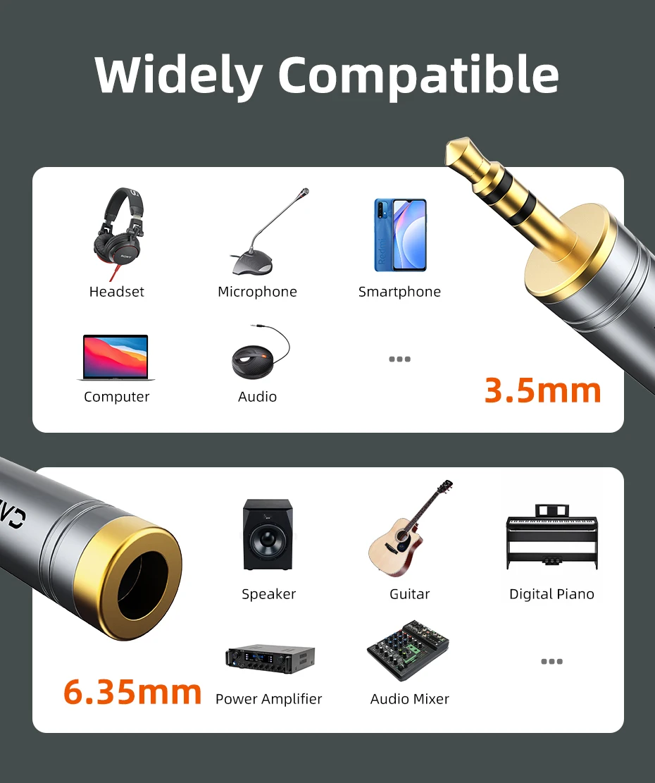 CABLETIME Jack 3,5 mm a 6,35 mm Micrófono Enchufe de audio para amplificador Altavoz Cable auxiliar Conector de 3,5 mm Aux a 6,35 mm Adaptador eléctrico