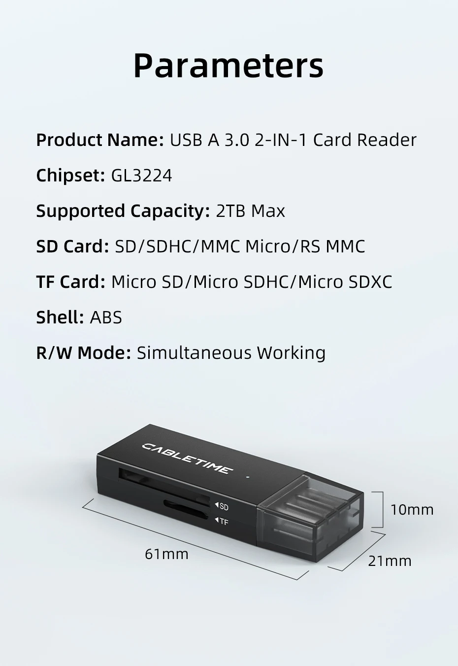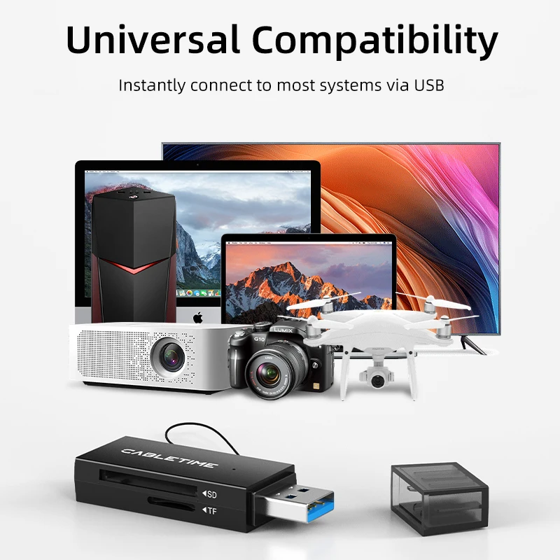 CABLETIME-lector de tarjetas de alta velocidad, lector de tarjetas de 104 mart MB/s, 5Gpbs, Accesorios para ordenador portátil, USB C y USB 3,0 A SD, C508