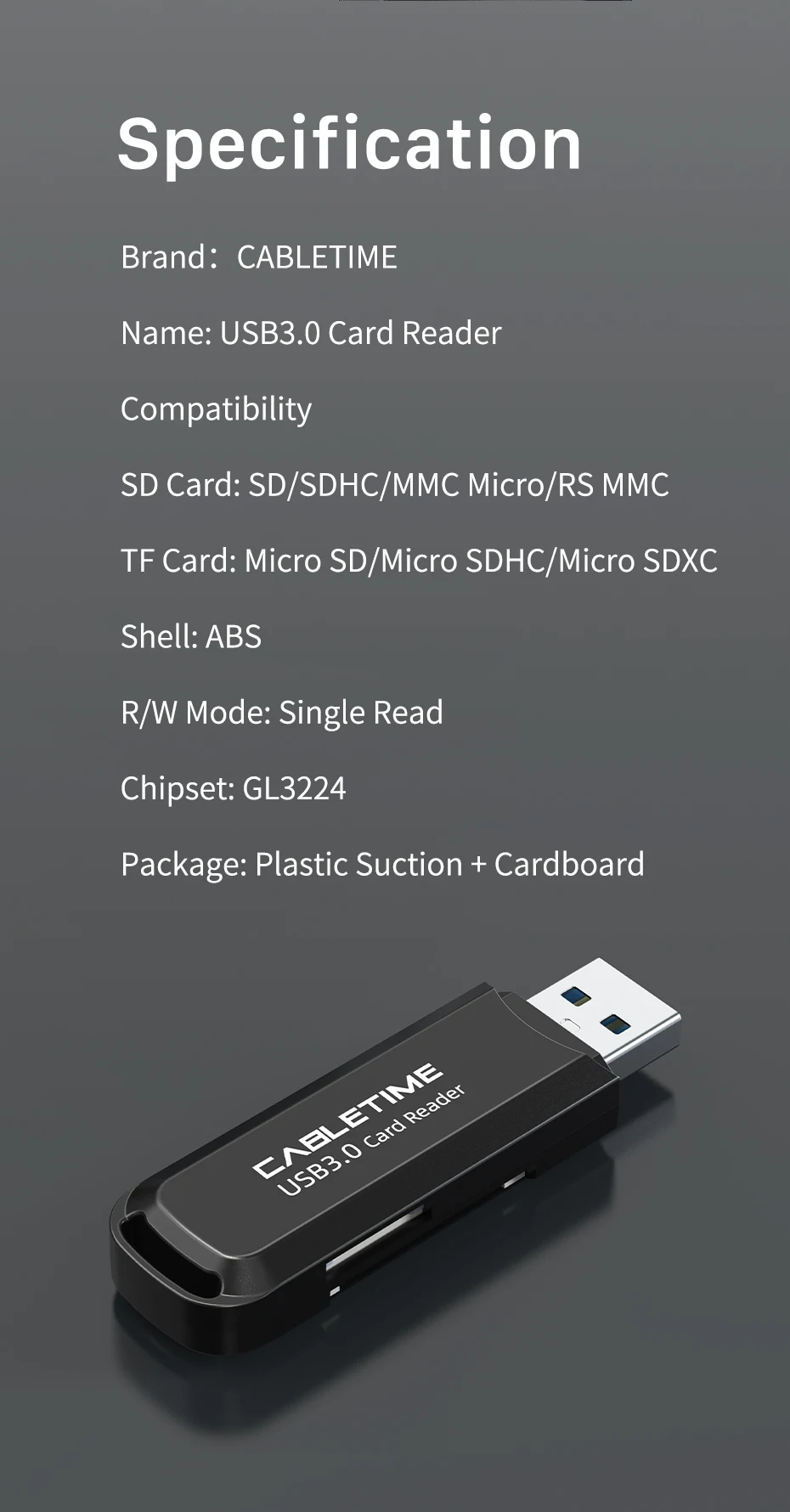 Solo lector de tarjetas USB3.0: lectura única
